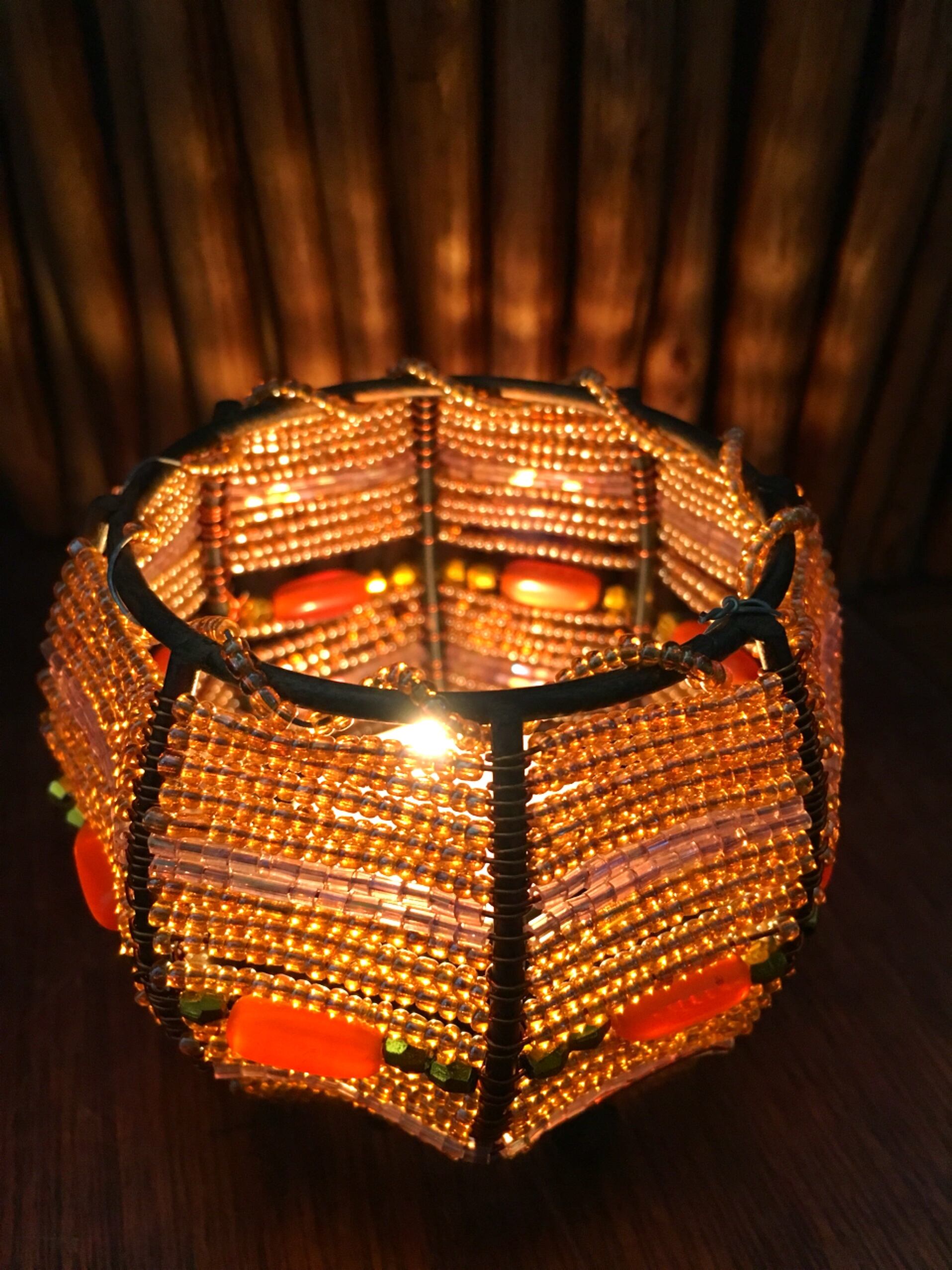 透明感のあるビーズが周りを囲んだオシャレなハンドメイドのキャンドルホルダーです✨