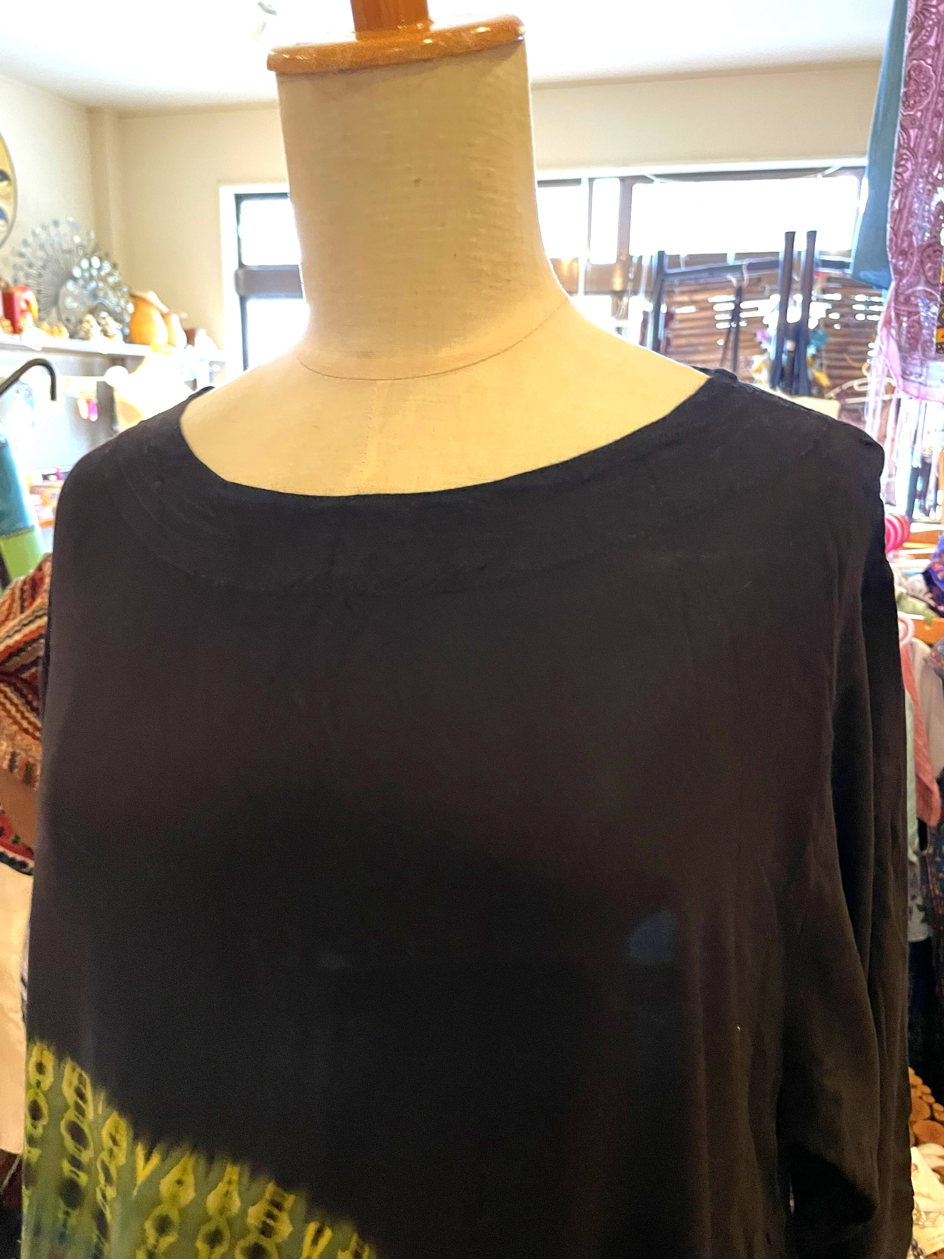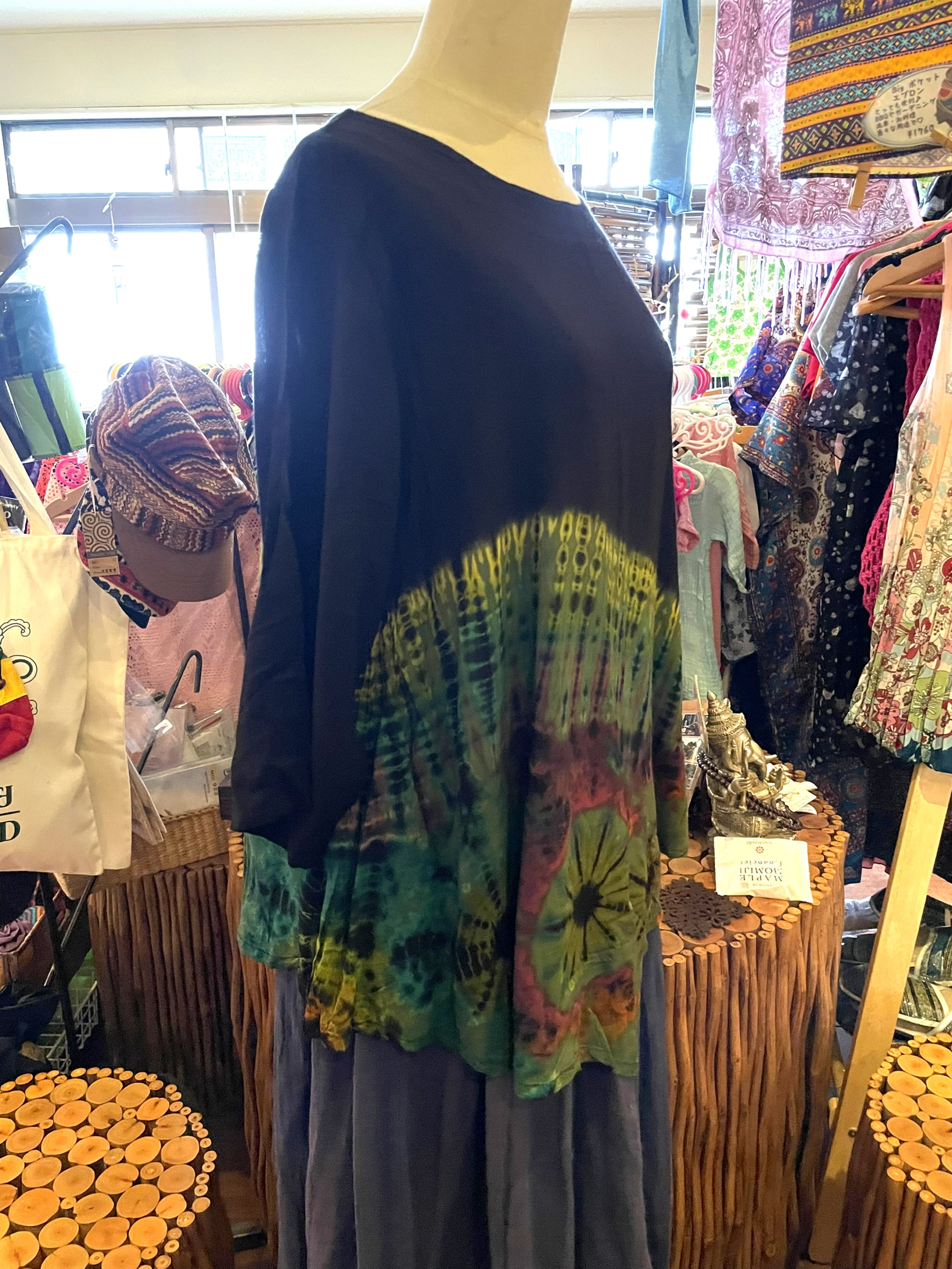 ロンT Tシャツ トップス 変形 カットソー 五分袖 七分袖 レディース タイダイ染め 羽織 ハーフタイダイ ファッション アジアン エスニック コットン大きいサイズ カジュアル ブラック グリーン 春 夏 秋*アジアン雑賀 No.208