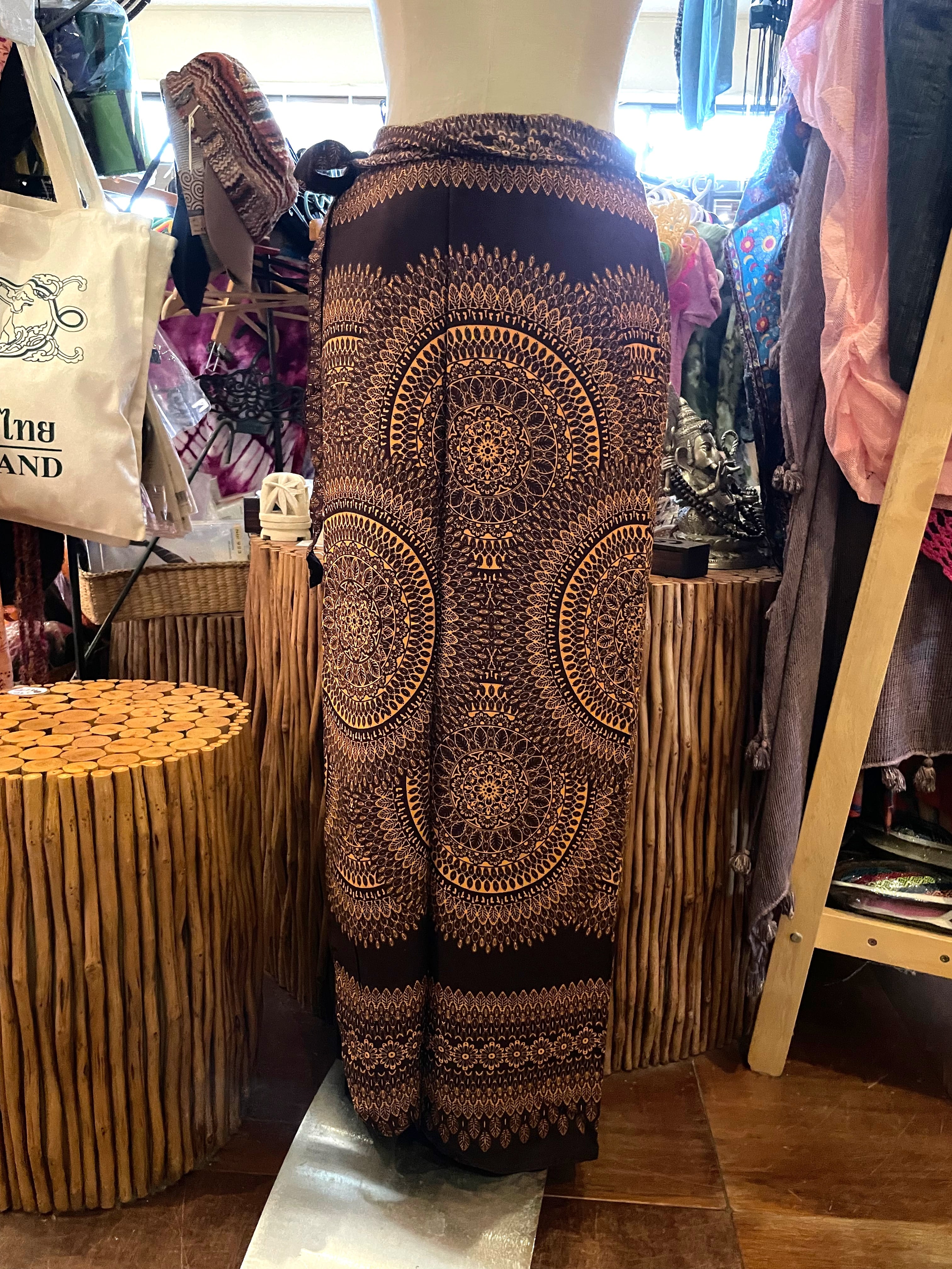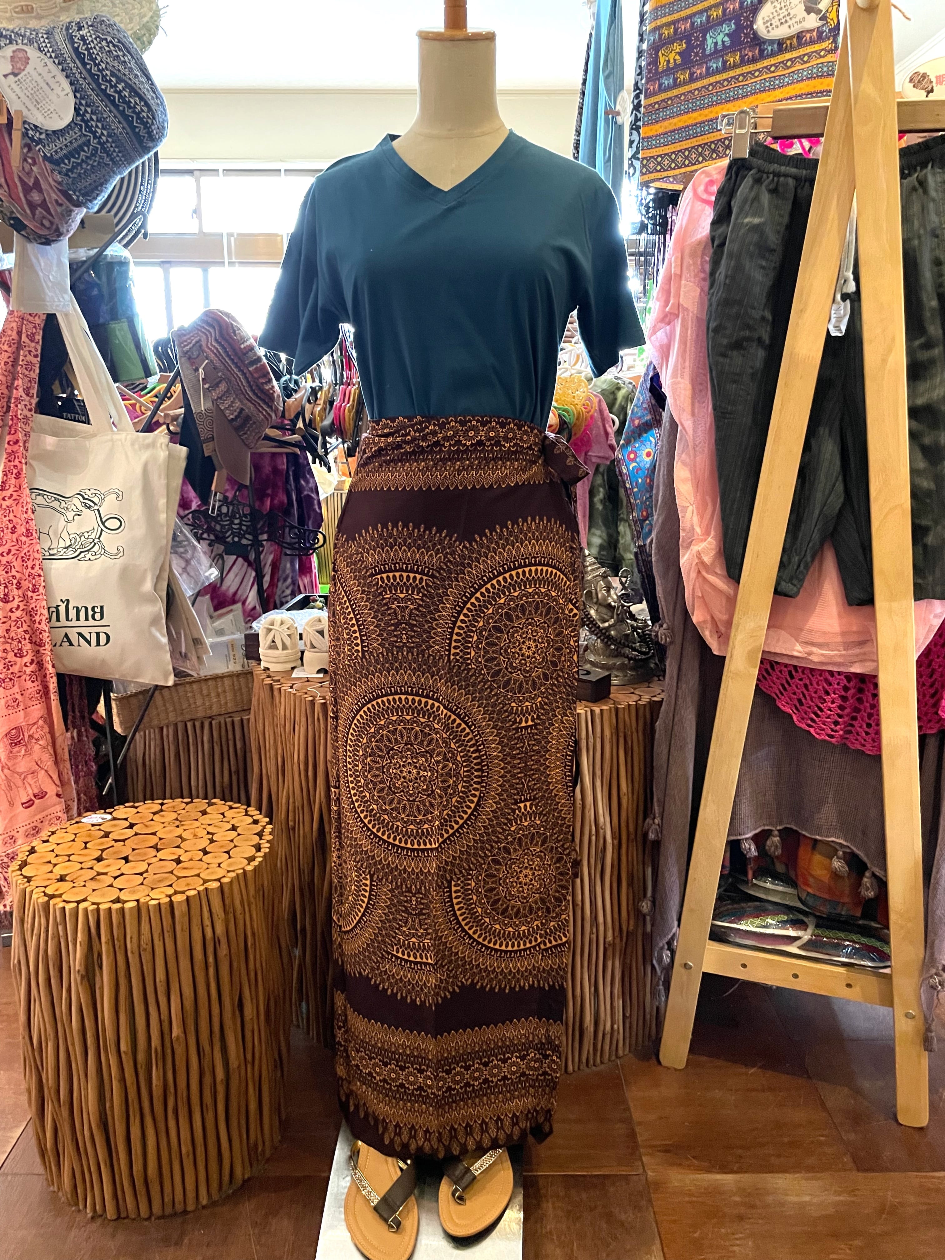 巻きスカート ラップスカート ロングスカート メンズスカート レディーススカート スカート ユニセックス アジアンスカート エスニックスカート メンズスカート マッサージ ユニホーム 柄 アフリカン エスニック アジアン 男女兼用 ブラウン * アジアン雑貨No.278