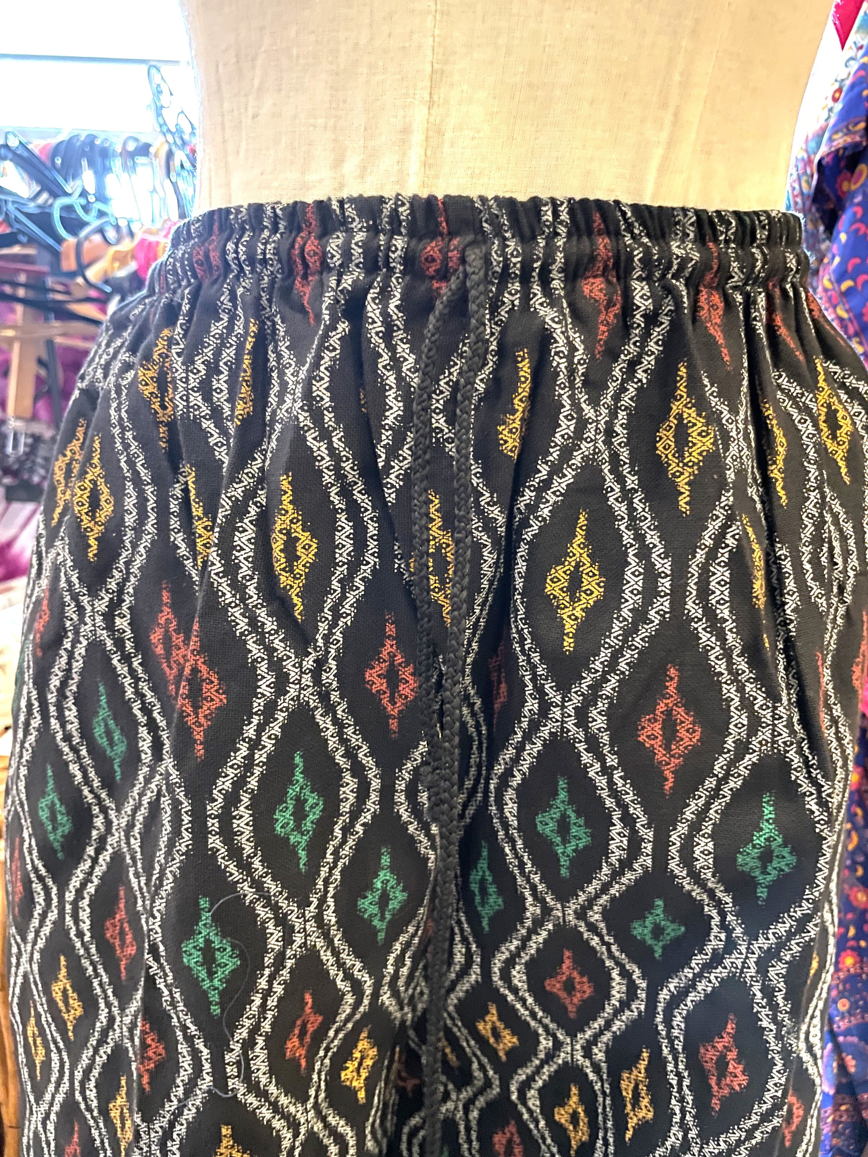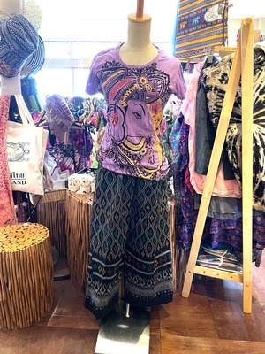 ワイドパンツ 厚手コットンパンツ アジアンパンツ パンツ ワイド ウエストゴム ガウチョ アジアン エスニック 春夏 秋冬 ボトムス 柄 総柄 個性的 ガウチョパンツ フレアパンツ ラップパンツ 大きいサイズ ロングパンツ ポケット付き アジアン衣料 紐 ブラック*アジアン雑賀 No.325