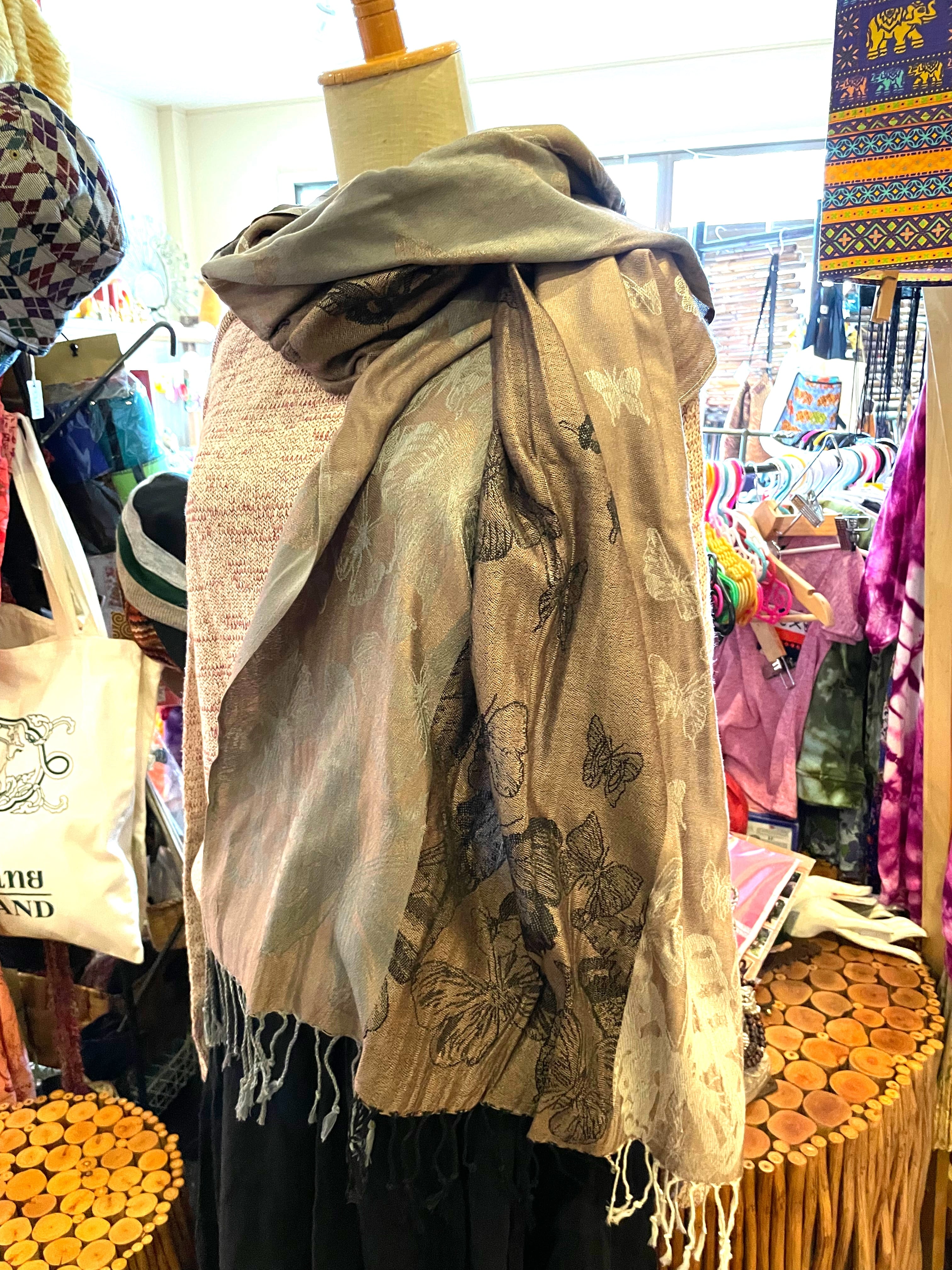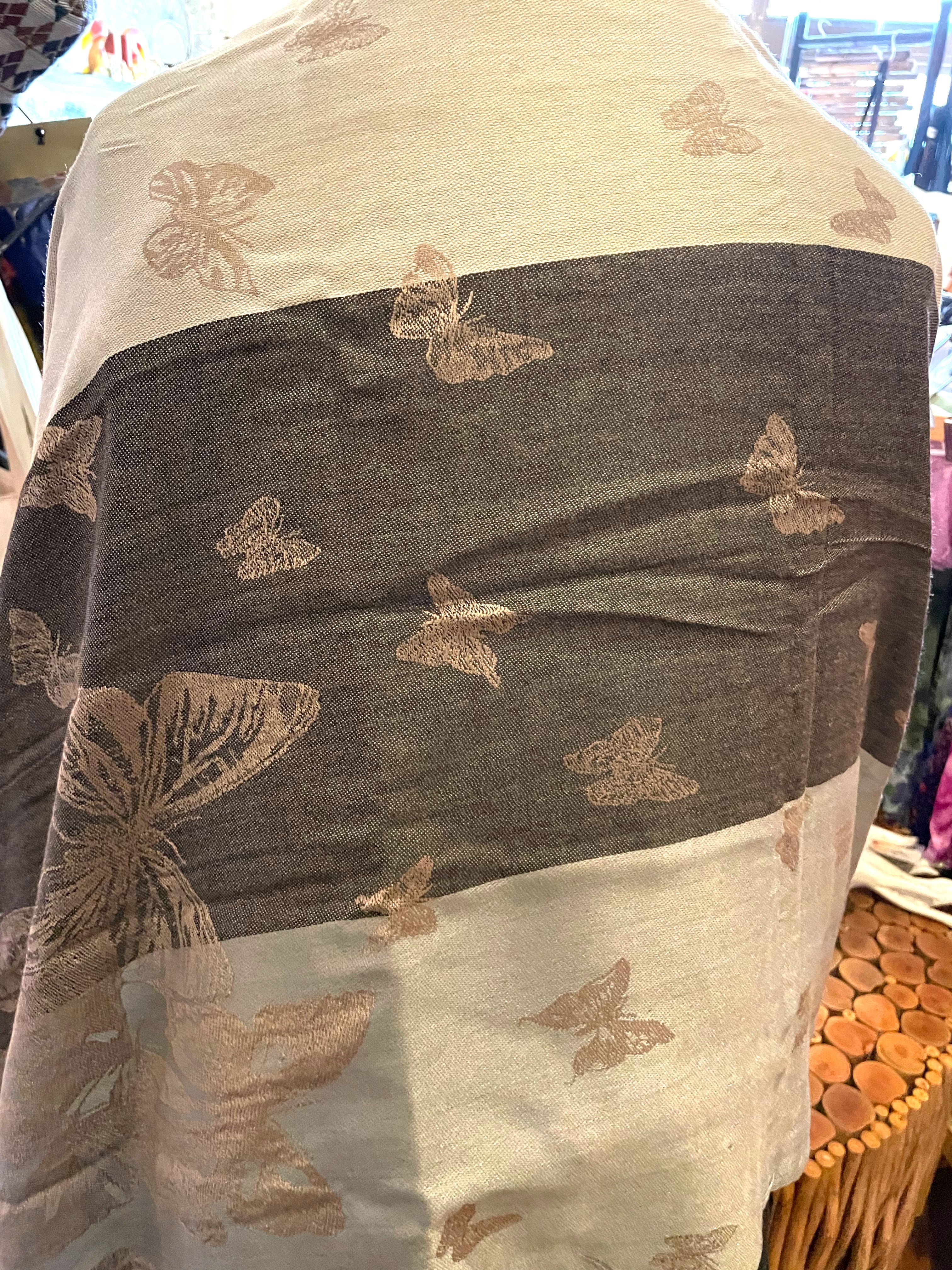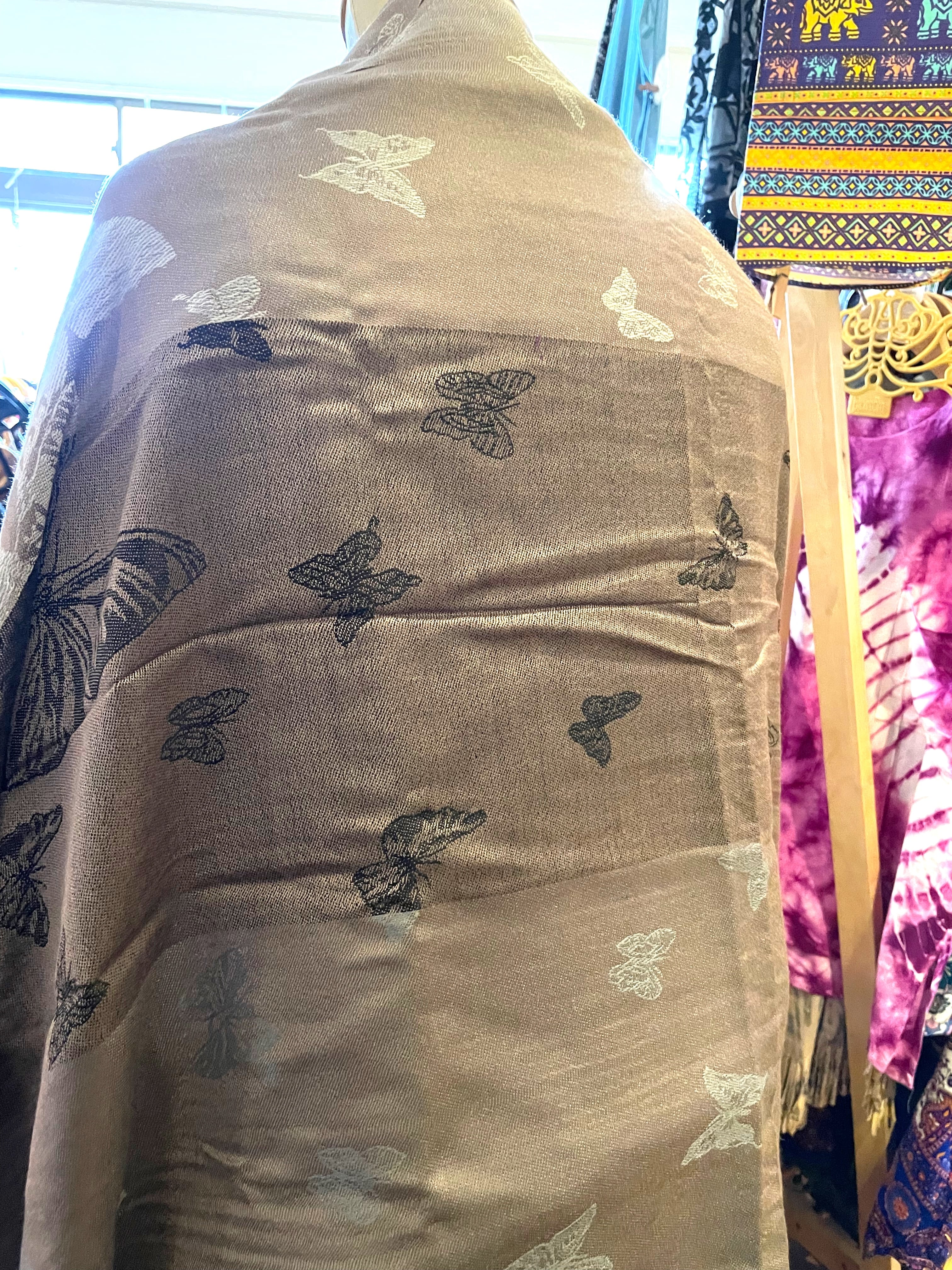 ストール 大判ストール 上品 柔らかい 光沢 リバーシブル リバーシブルストール 春 夏 秋 冬 マフラー アジアンストール 柄 エスニックファッション アフリカン エスニック パーティー プレゼント アジアン 蝶々柄 ブラウン系 * アジアン雑貨 No.18 A