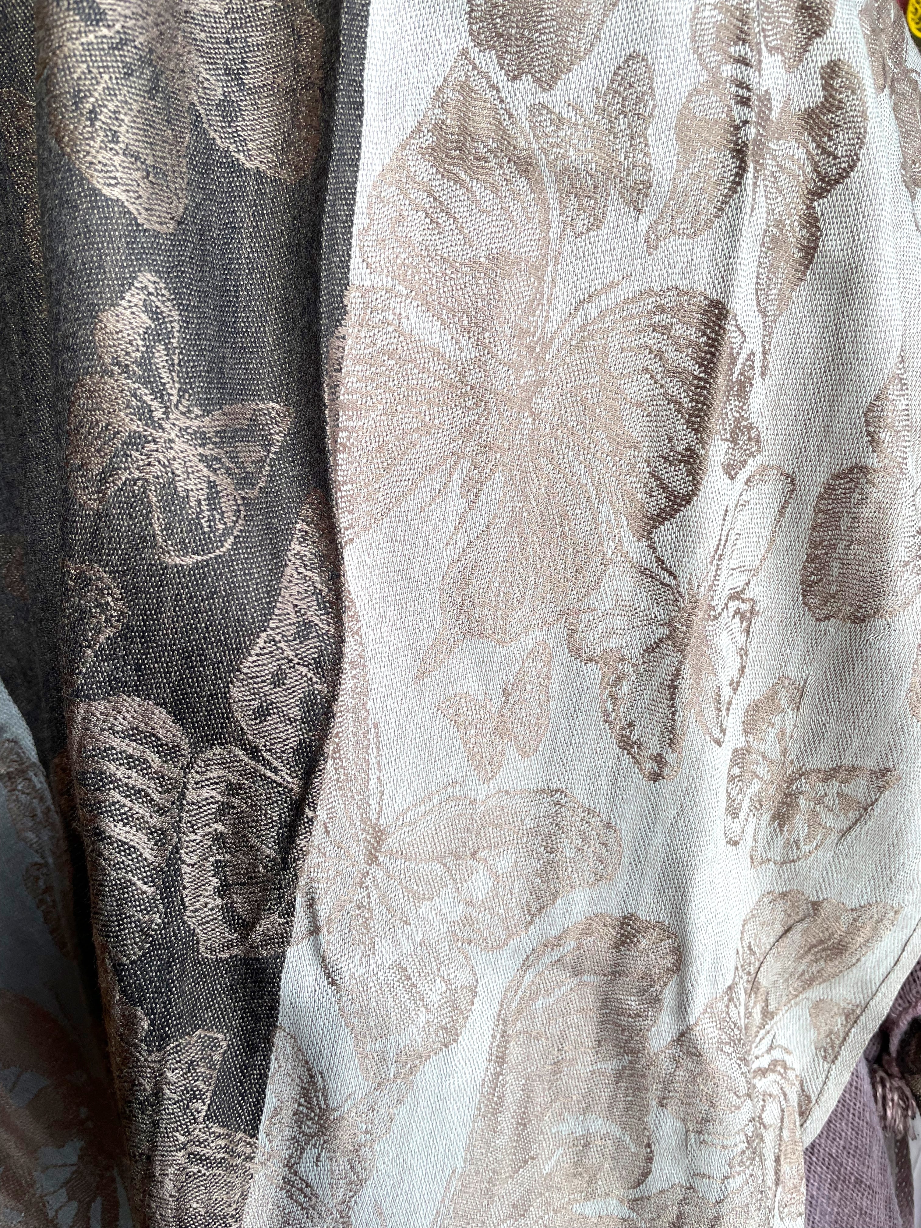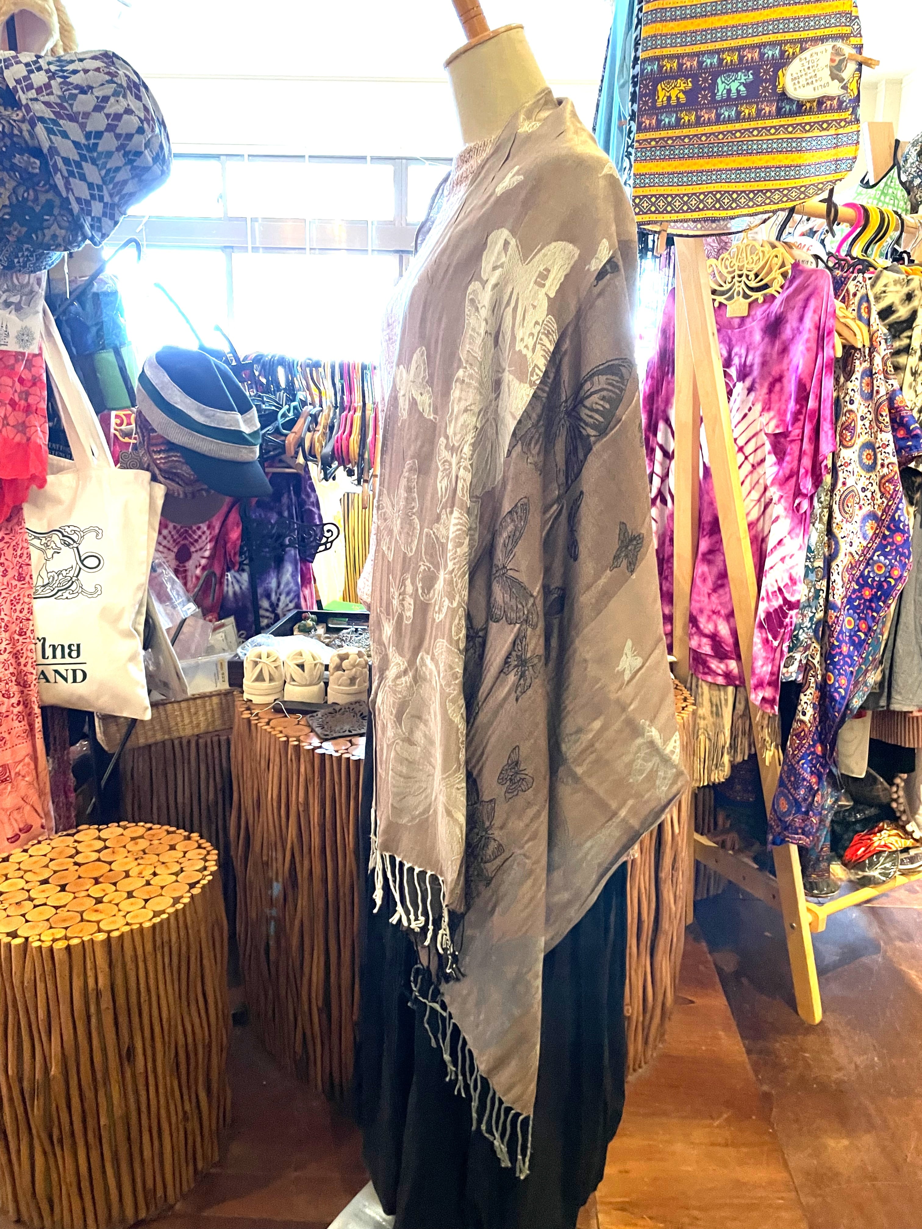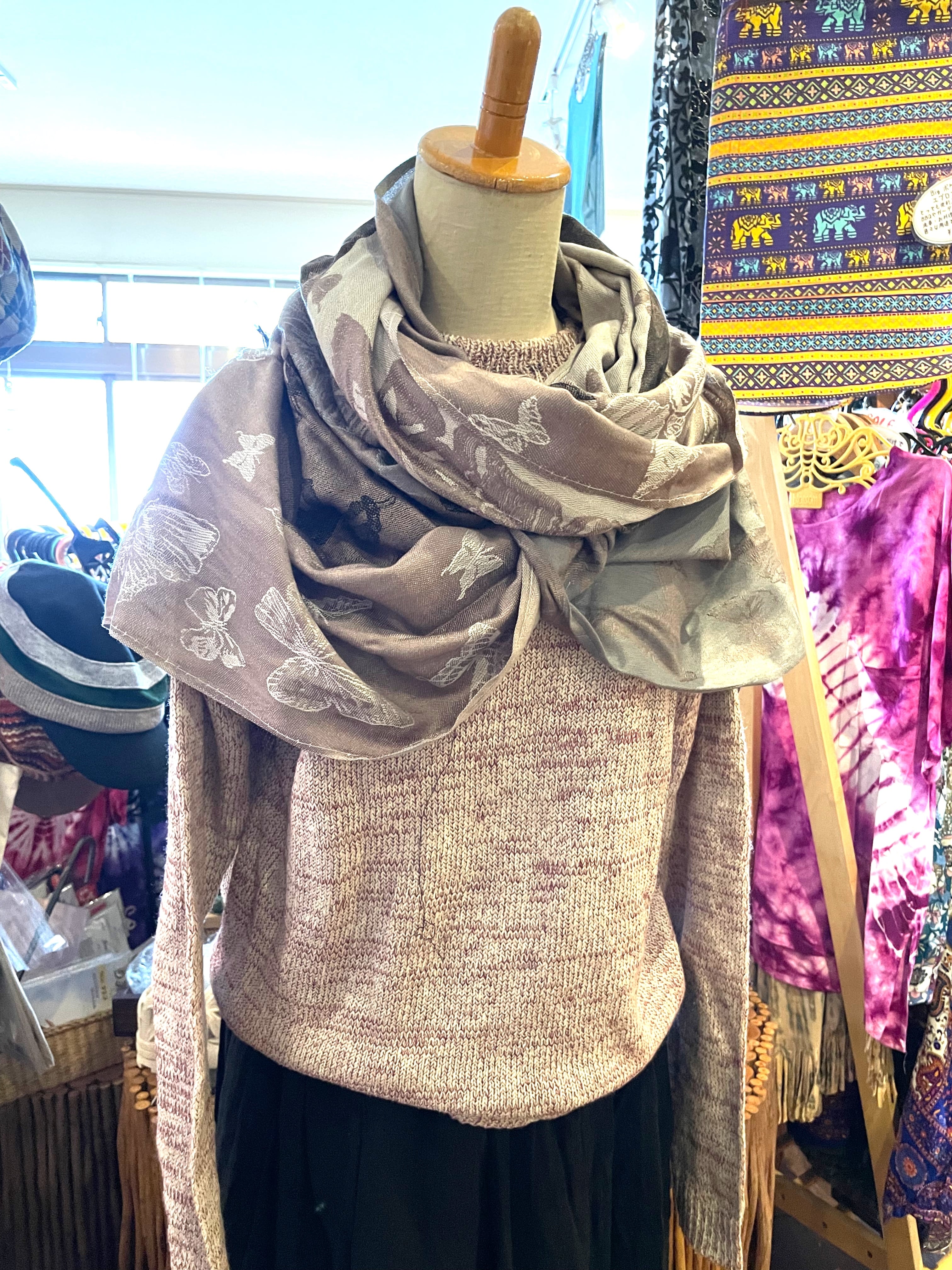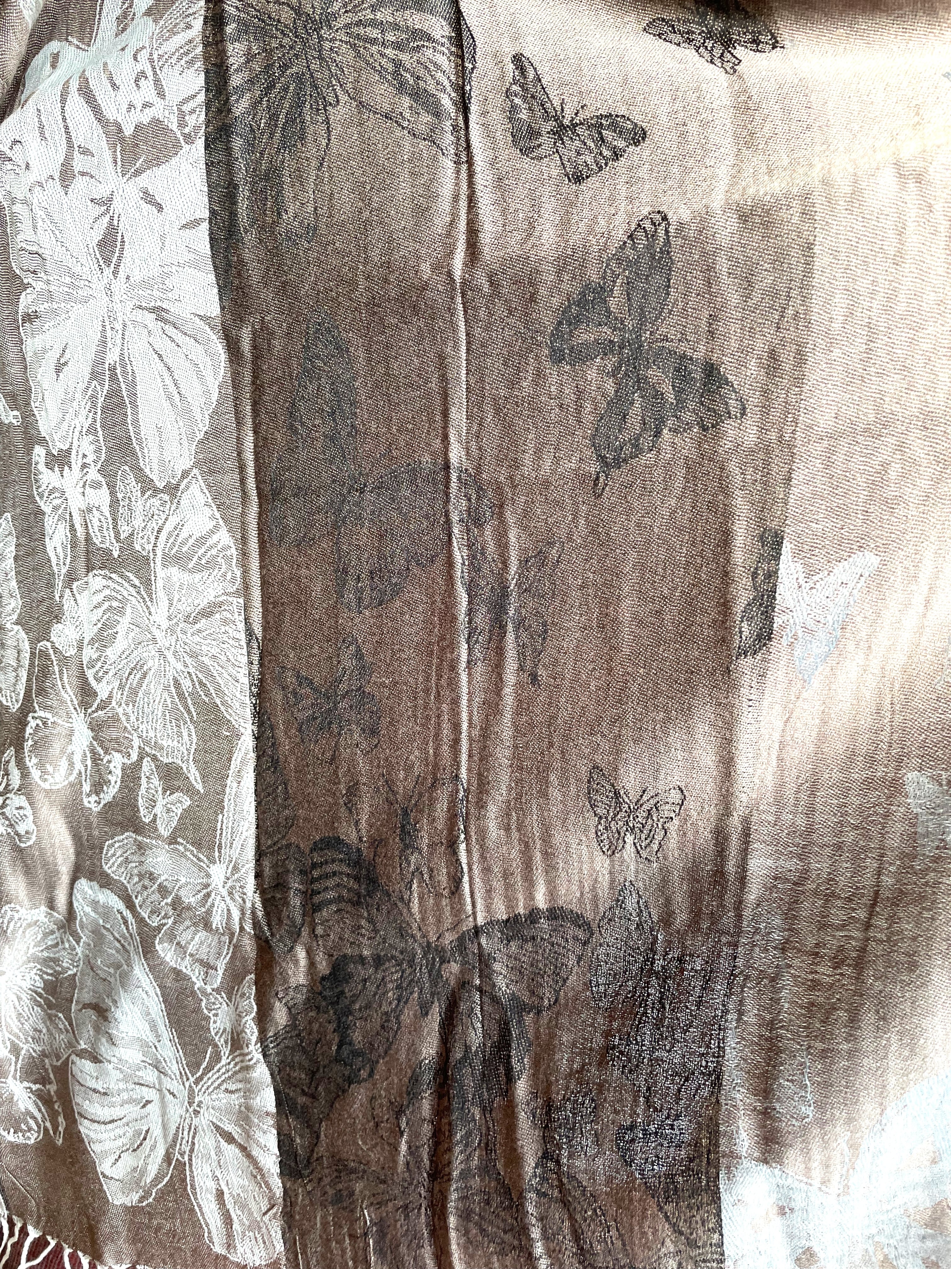 ストール 大判ストール 上品 柔らかい 光沢 リバーシブル リバーシブルストール 春 夏 秋 冬 マフラー アジアンストール 柄 エスニックファッション アフリカン エスニック パーティー プレゼント アジアン 蝶々柄 ブラウン系 * アジアン雑貨 No.18 A