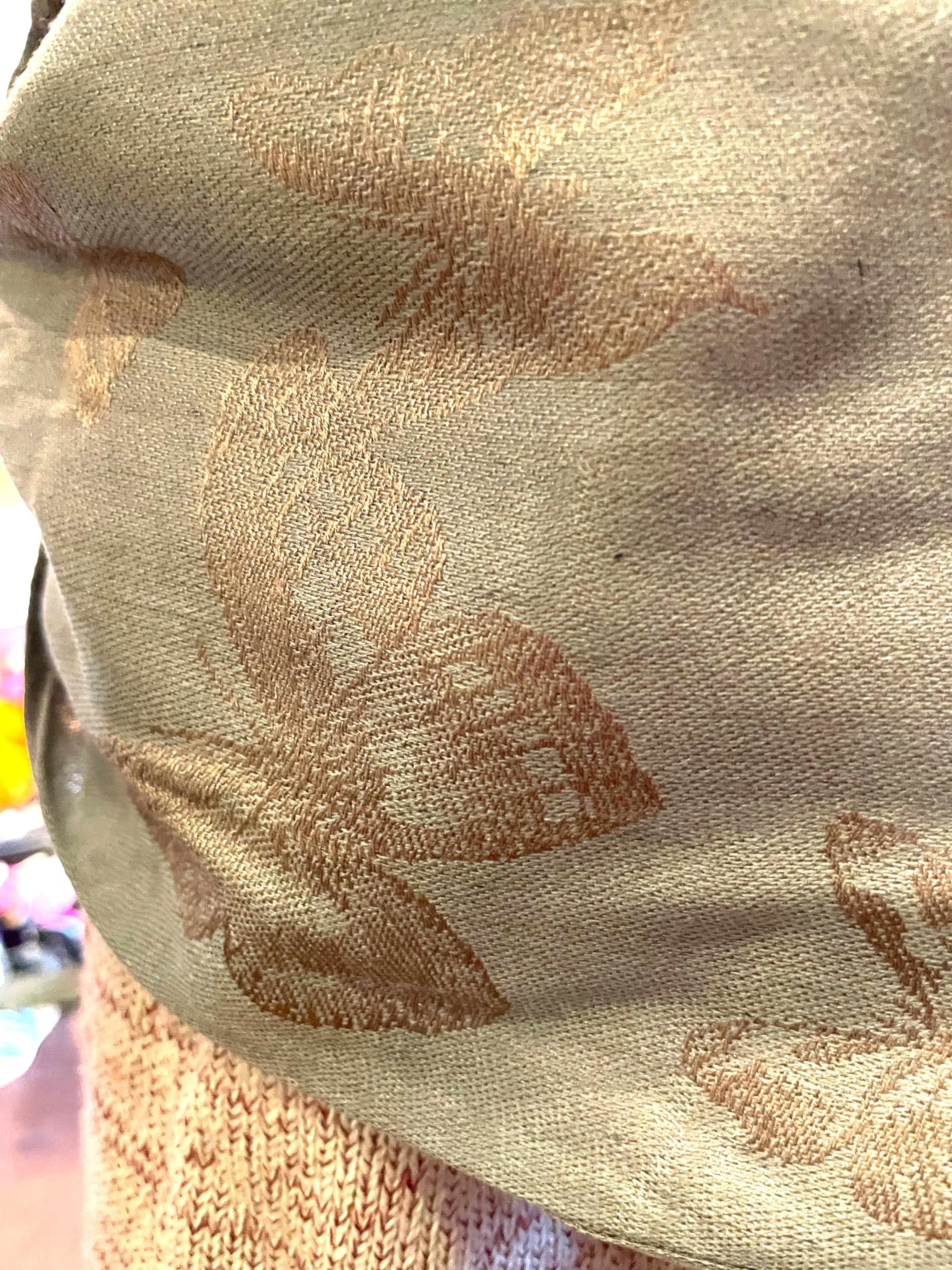 ゴールド・シルバー・ブラウンの糸が織りなす蝶々が更に上品に演出✨