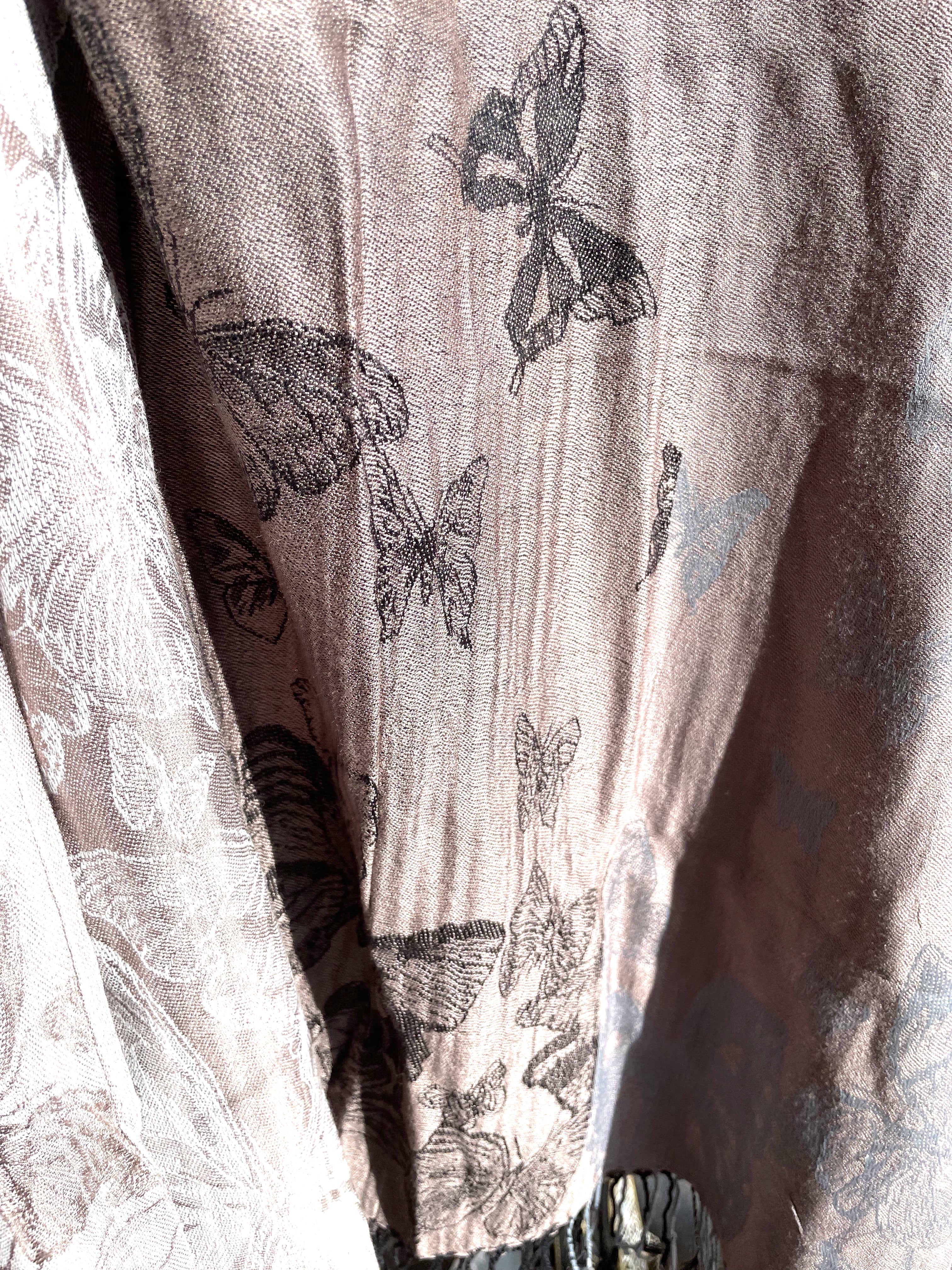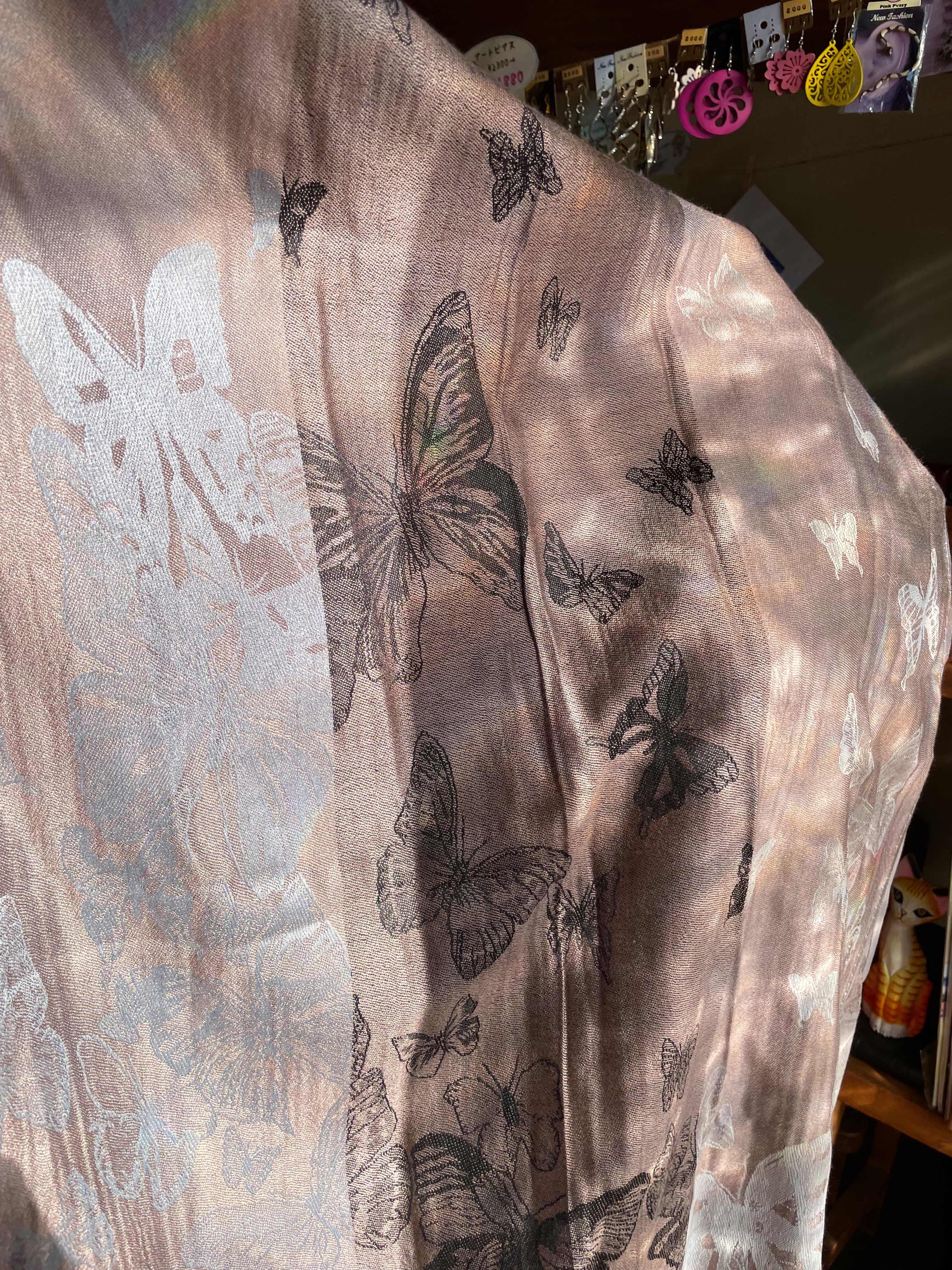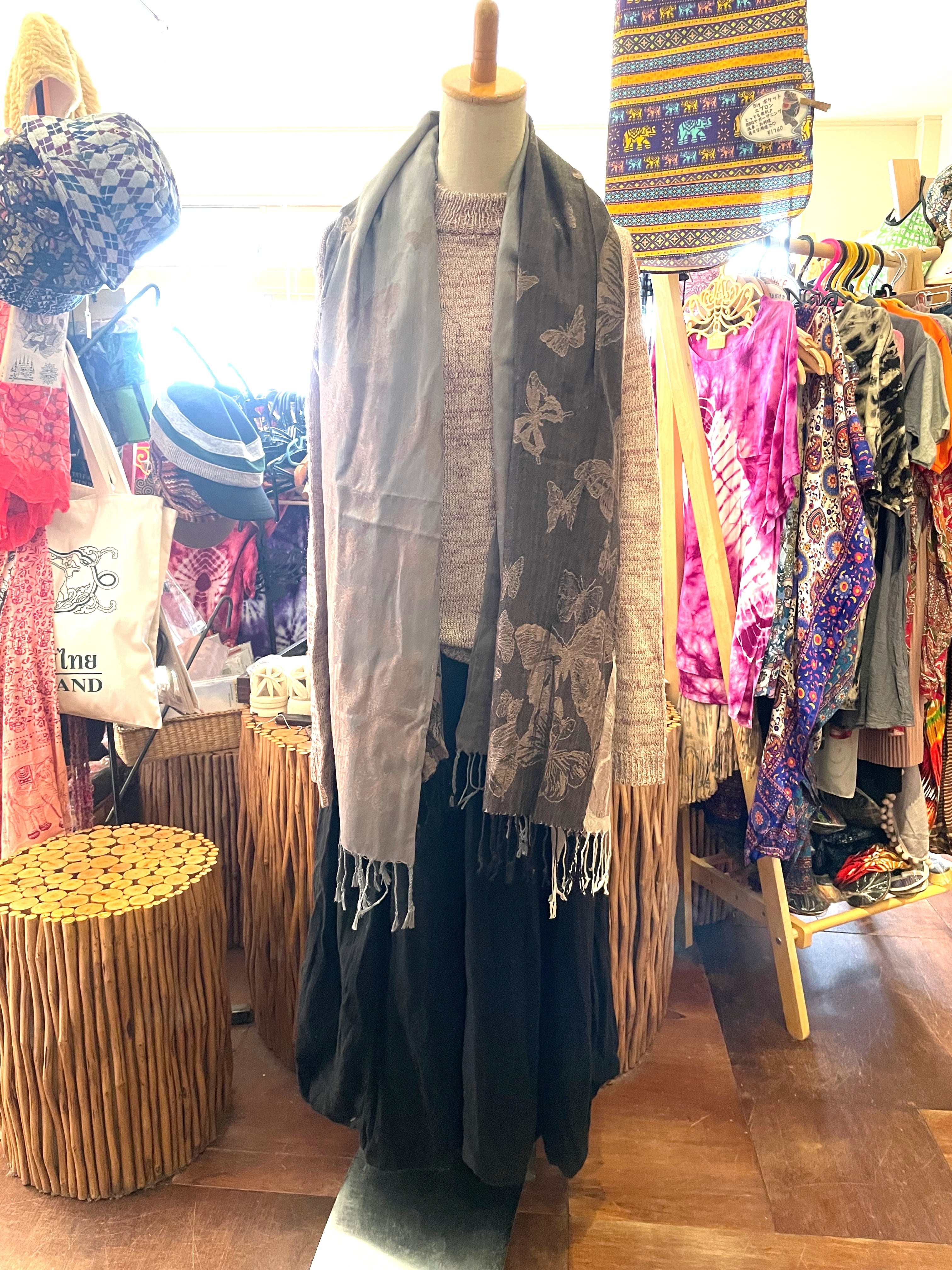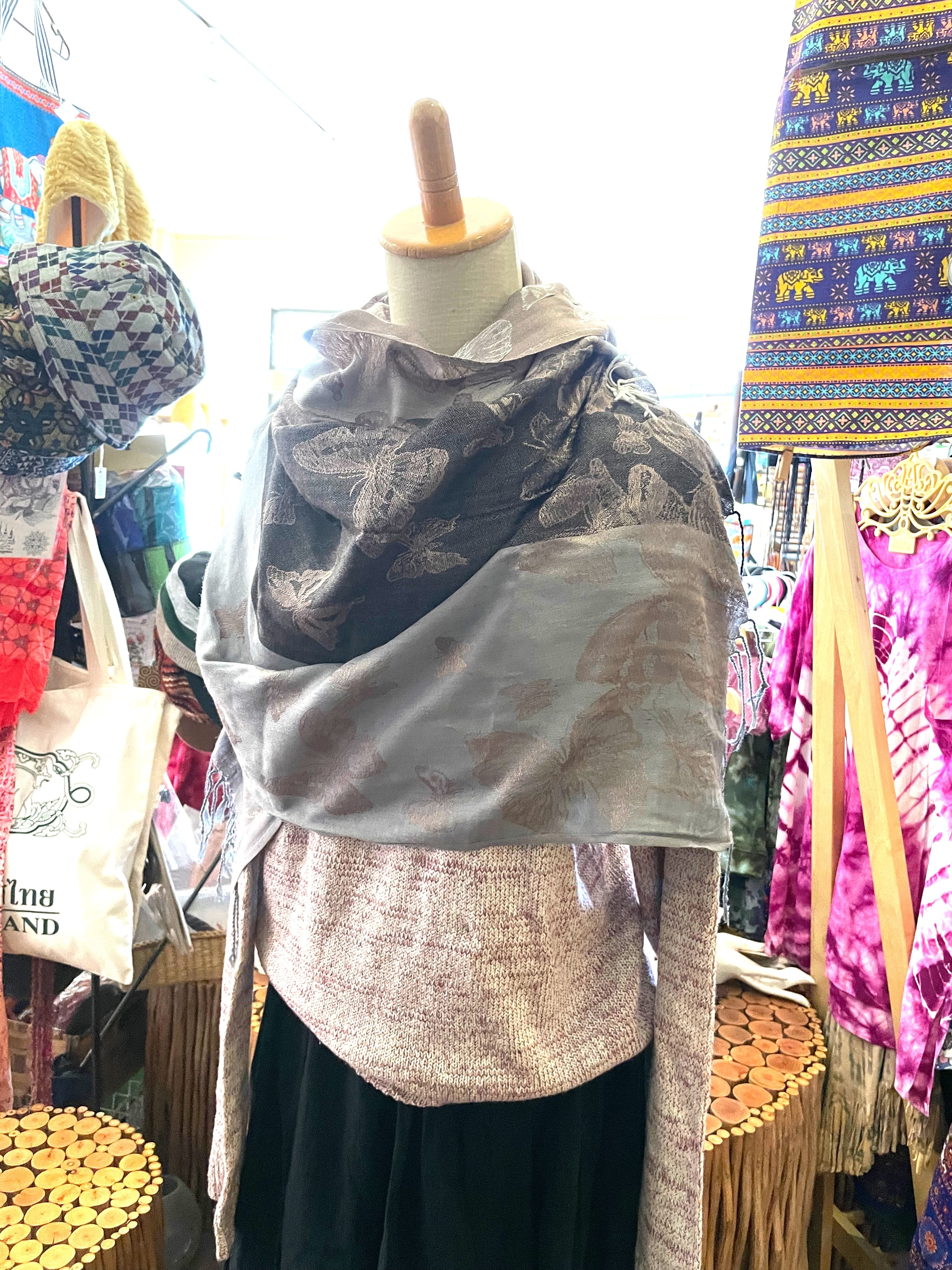ストール 大判ストール 上品 柔らかい 光沢 リバーシブル リバーシブルストール 春 夏 秋 冬 マフラー アジアンストール 柄 エスニックファッション アフリカン エスニック パーティー プレゼント アジアン 蝶々柄 ライトブラウン グレー * アジアン雑貨 No.18 B