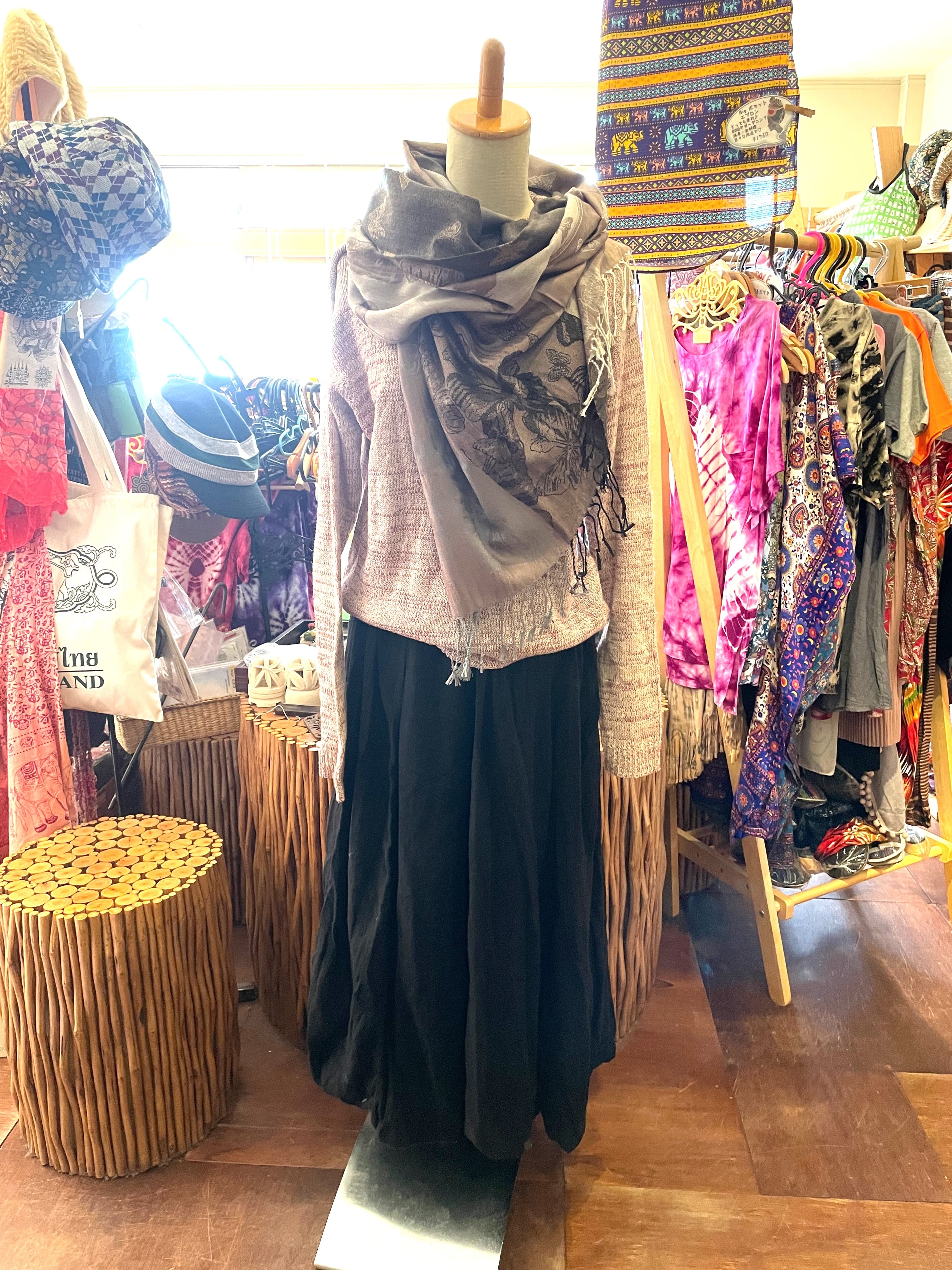 パシュミナストールは、カシミアの繊維を糸に紡ぎ織りあげるため、軽く・薄く・光沢感が高いという特徴を持ちます。