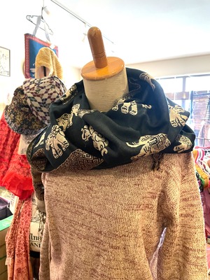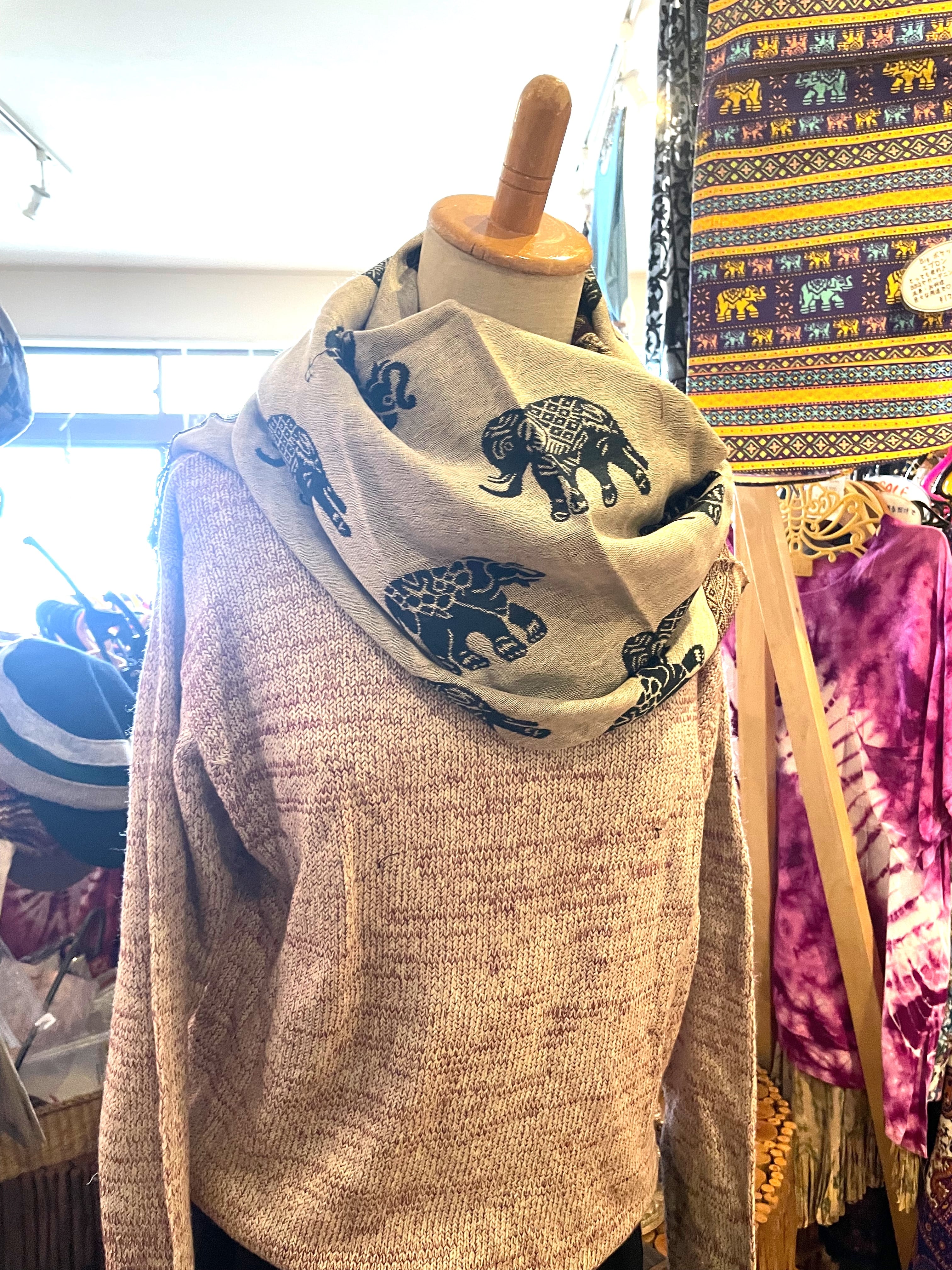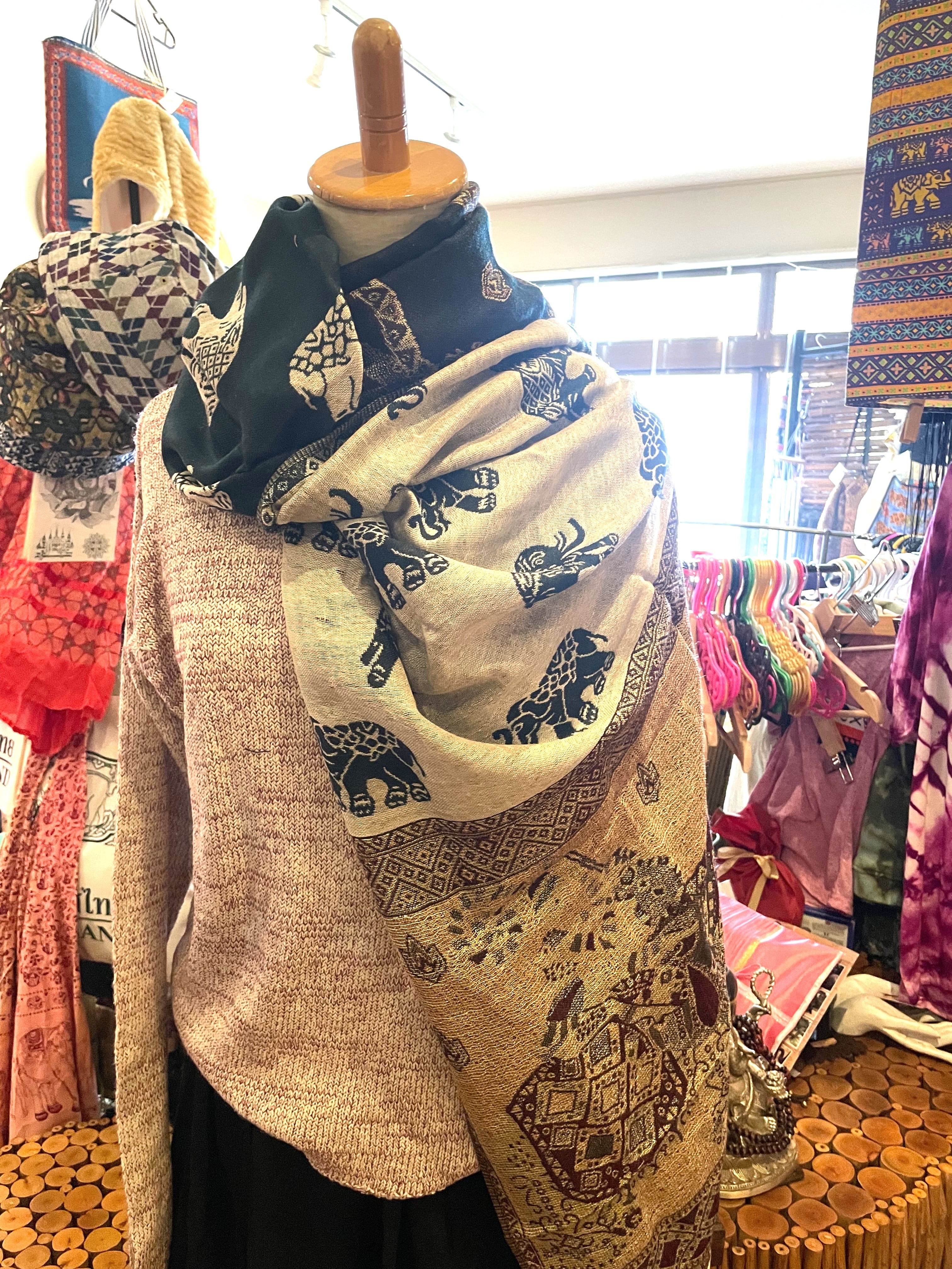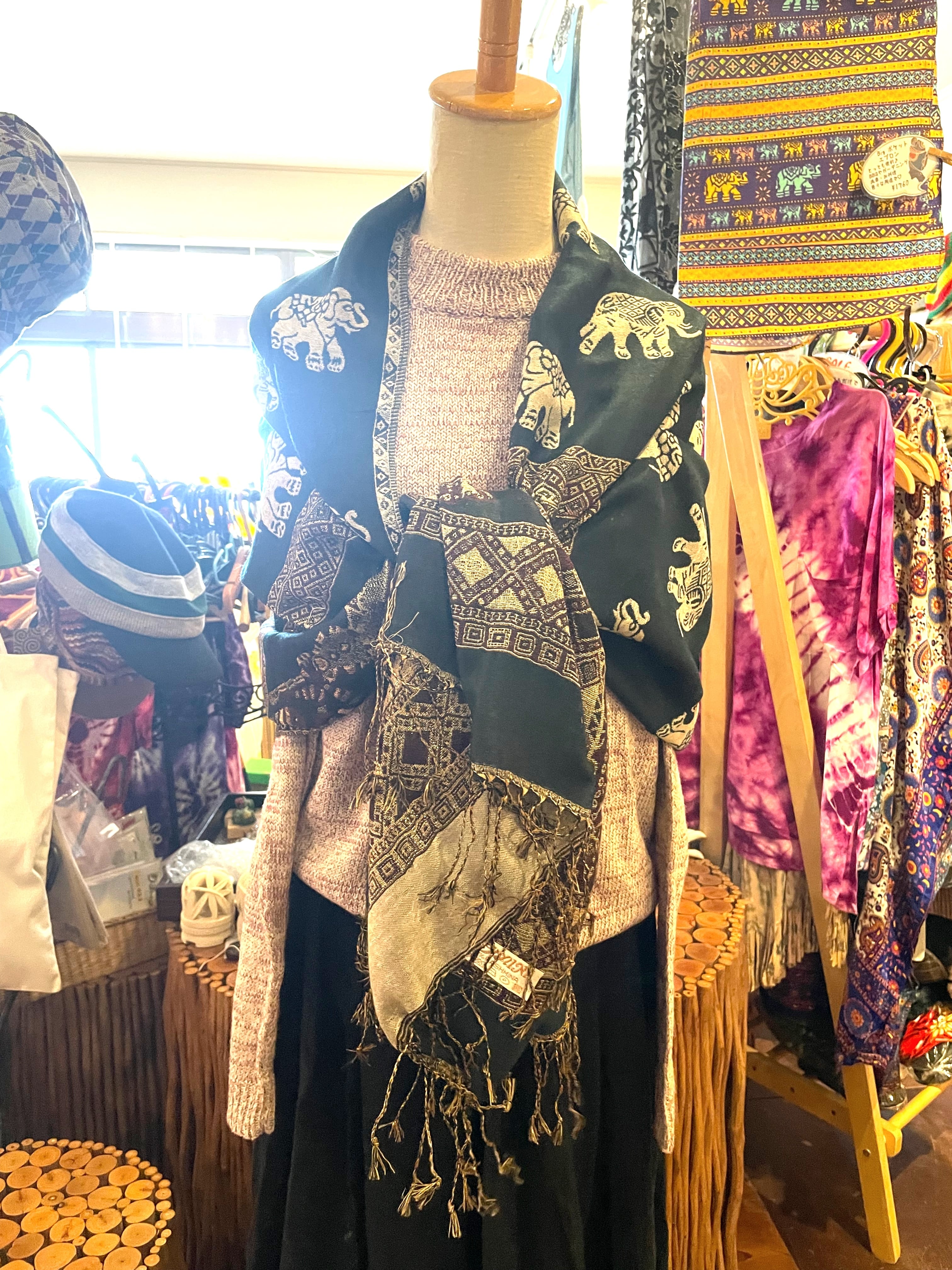 《ゾウ柄*リバーシブルアジアンストール》E