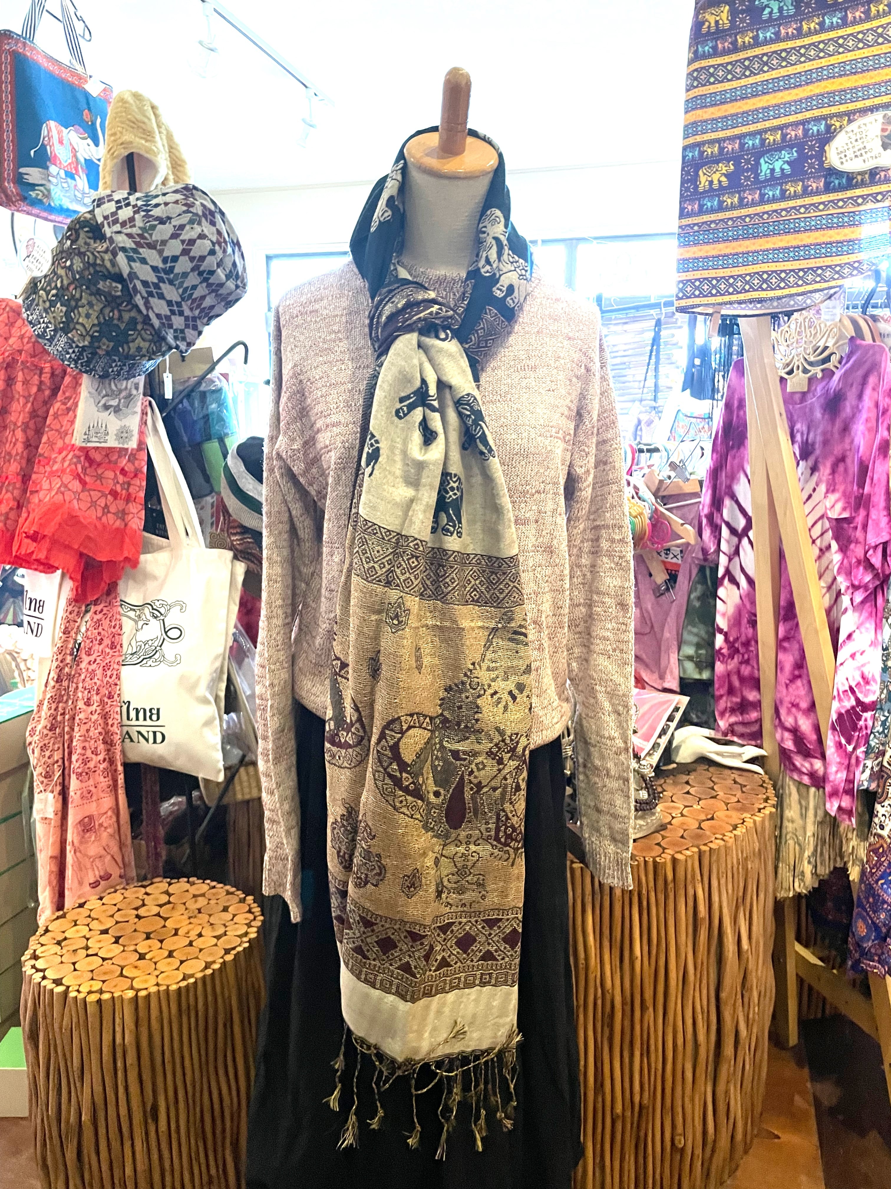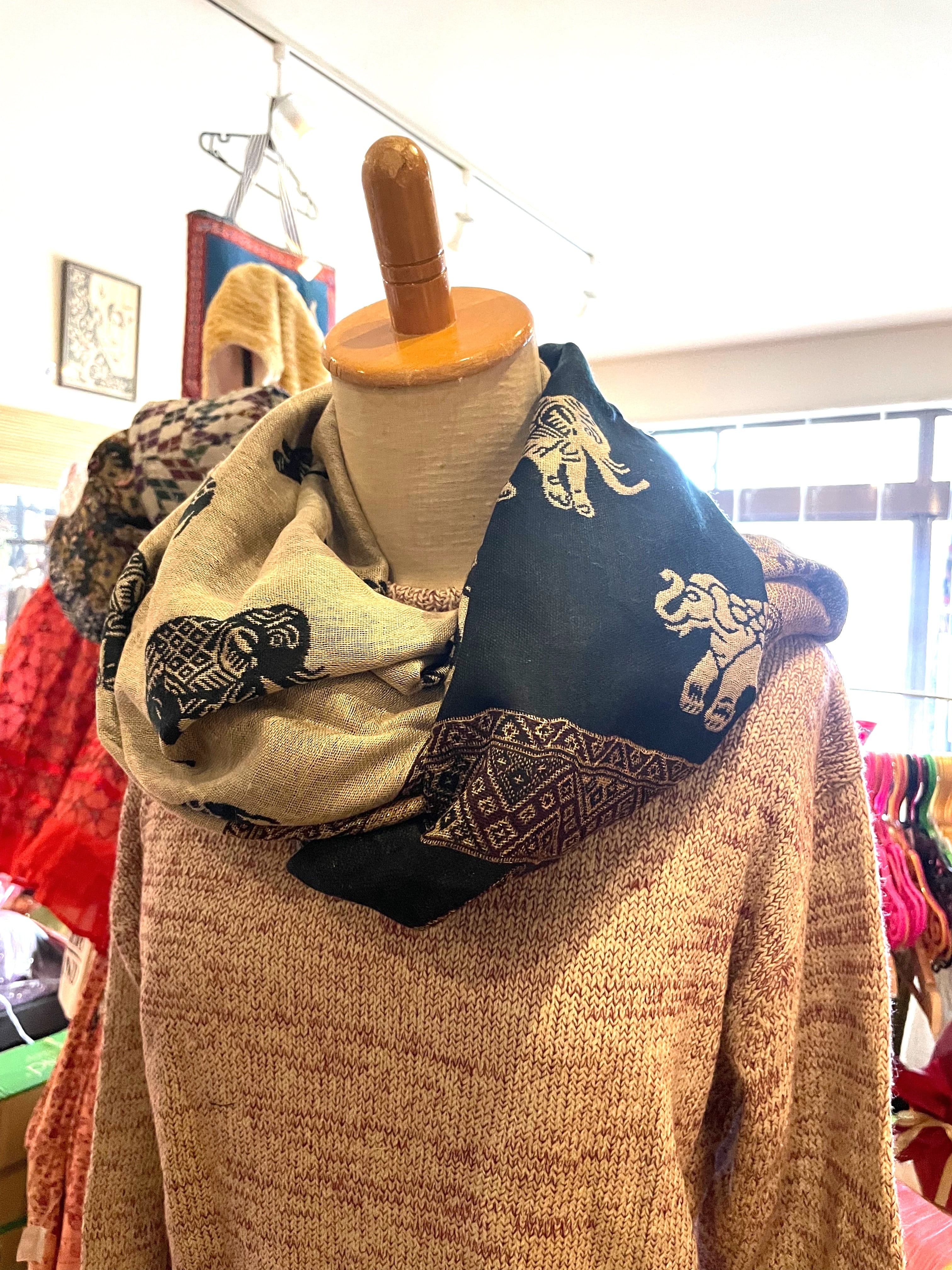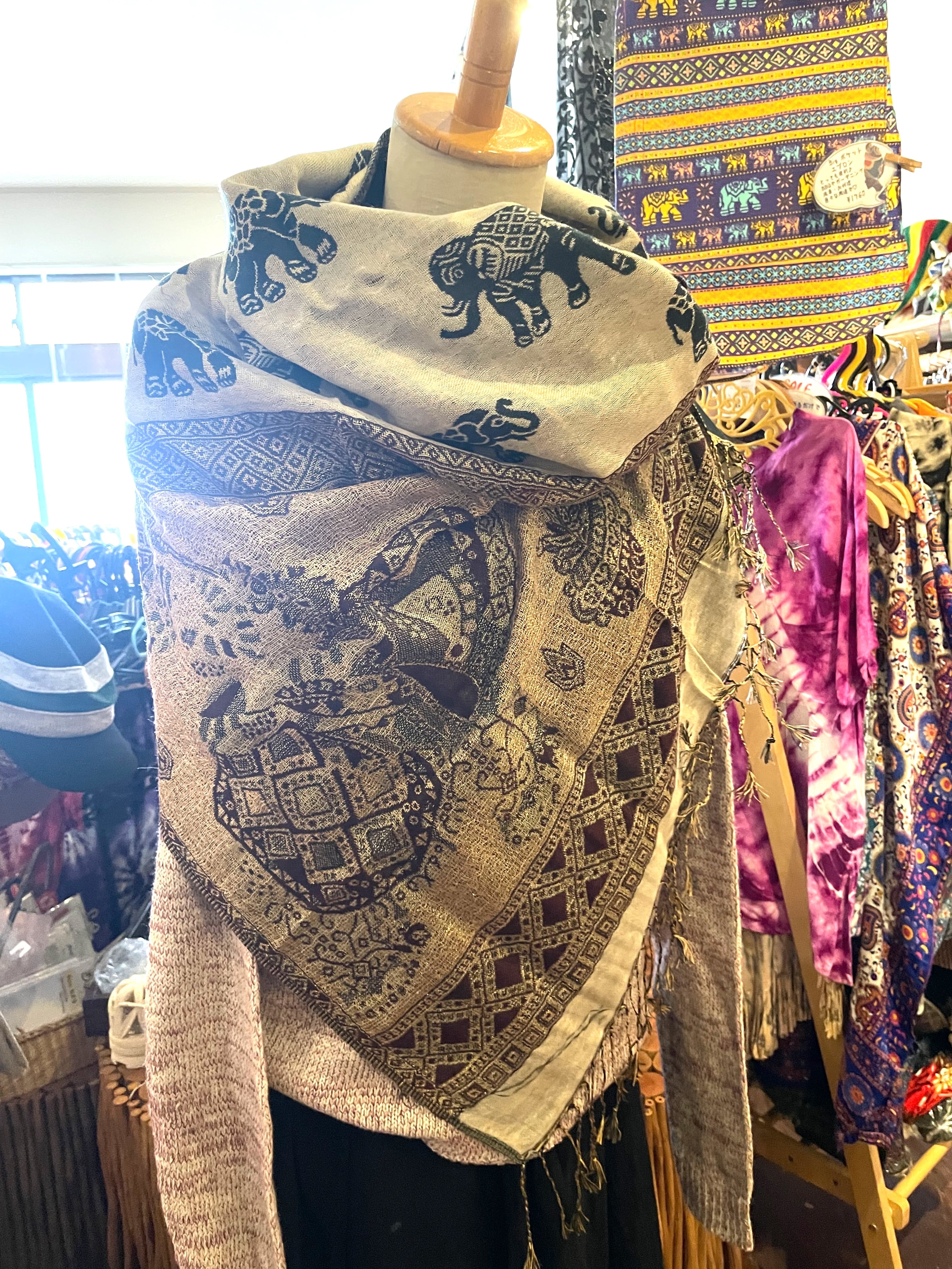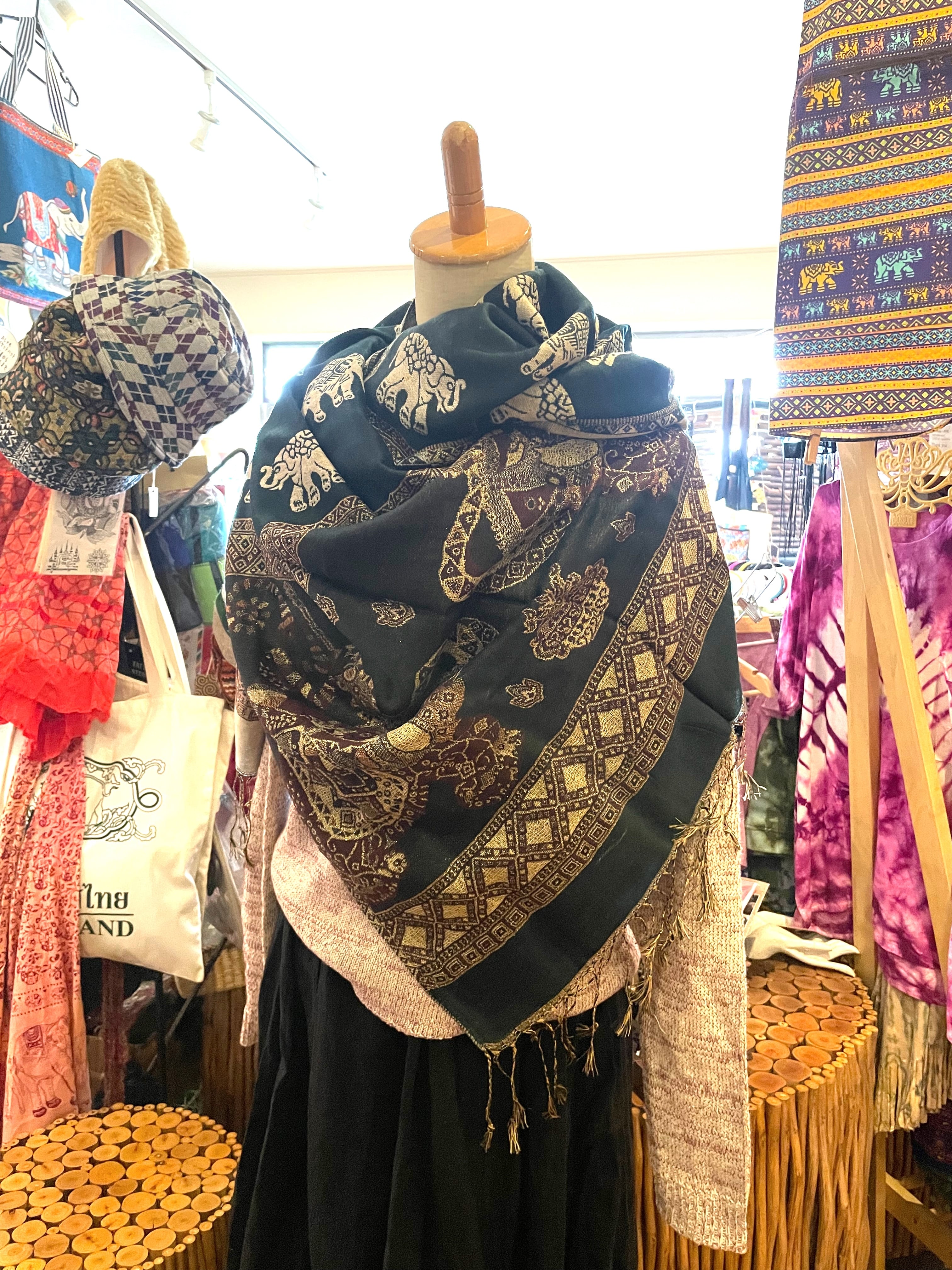 《ゾウ柄*リバーシブルアジアンストール》E
