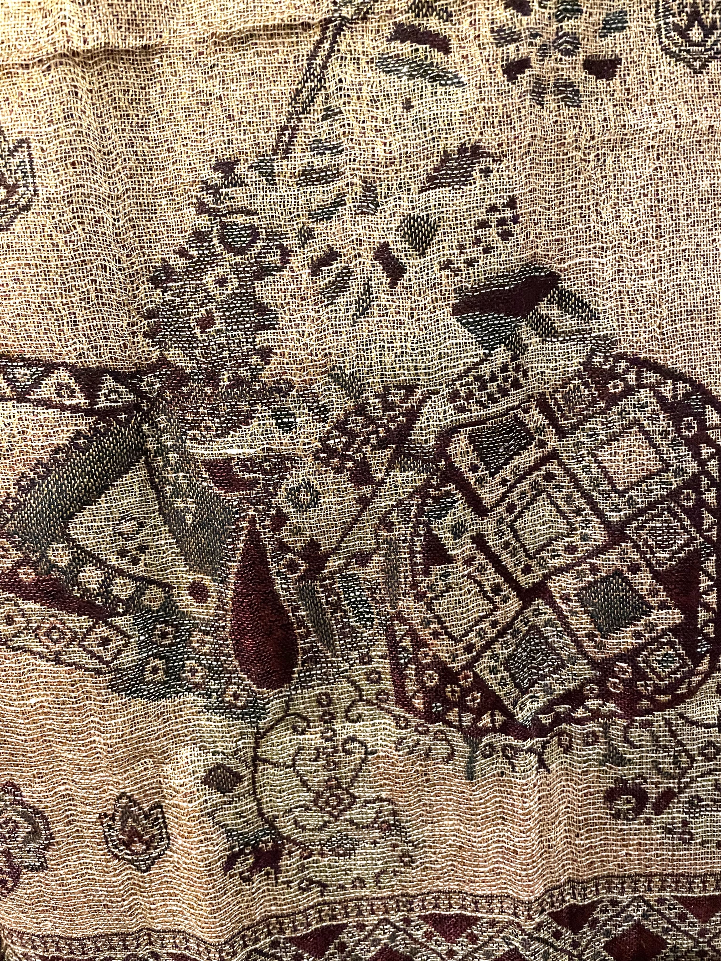 パシュミナストールは、カシミアの繊維を糸に紡ぎ織りあげるため、軽く・薄く・光沢感が高いという特徴を持ちます。