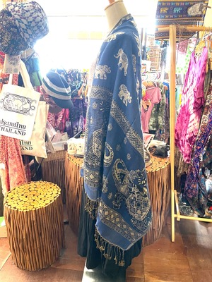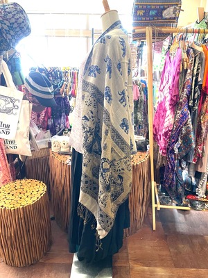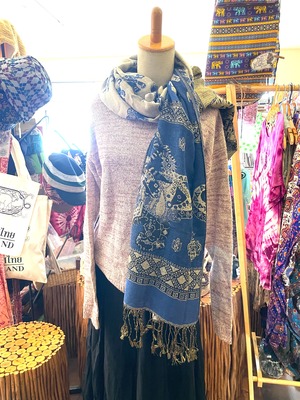 《ゾウ柄*リバーシブルアジアンストール》G