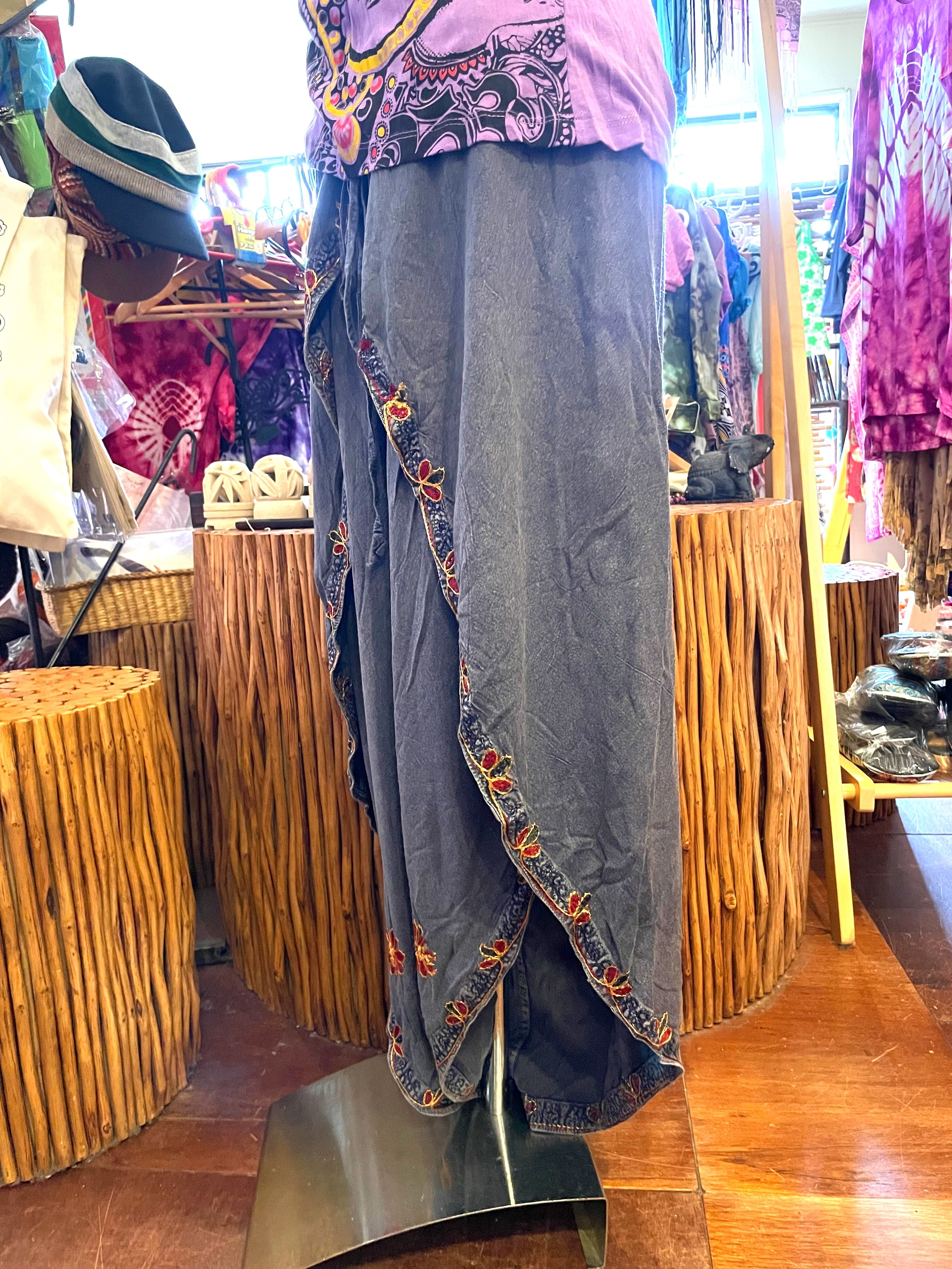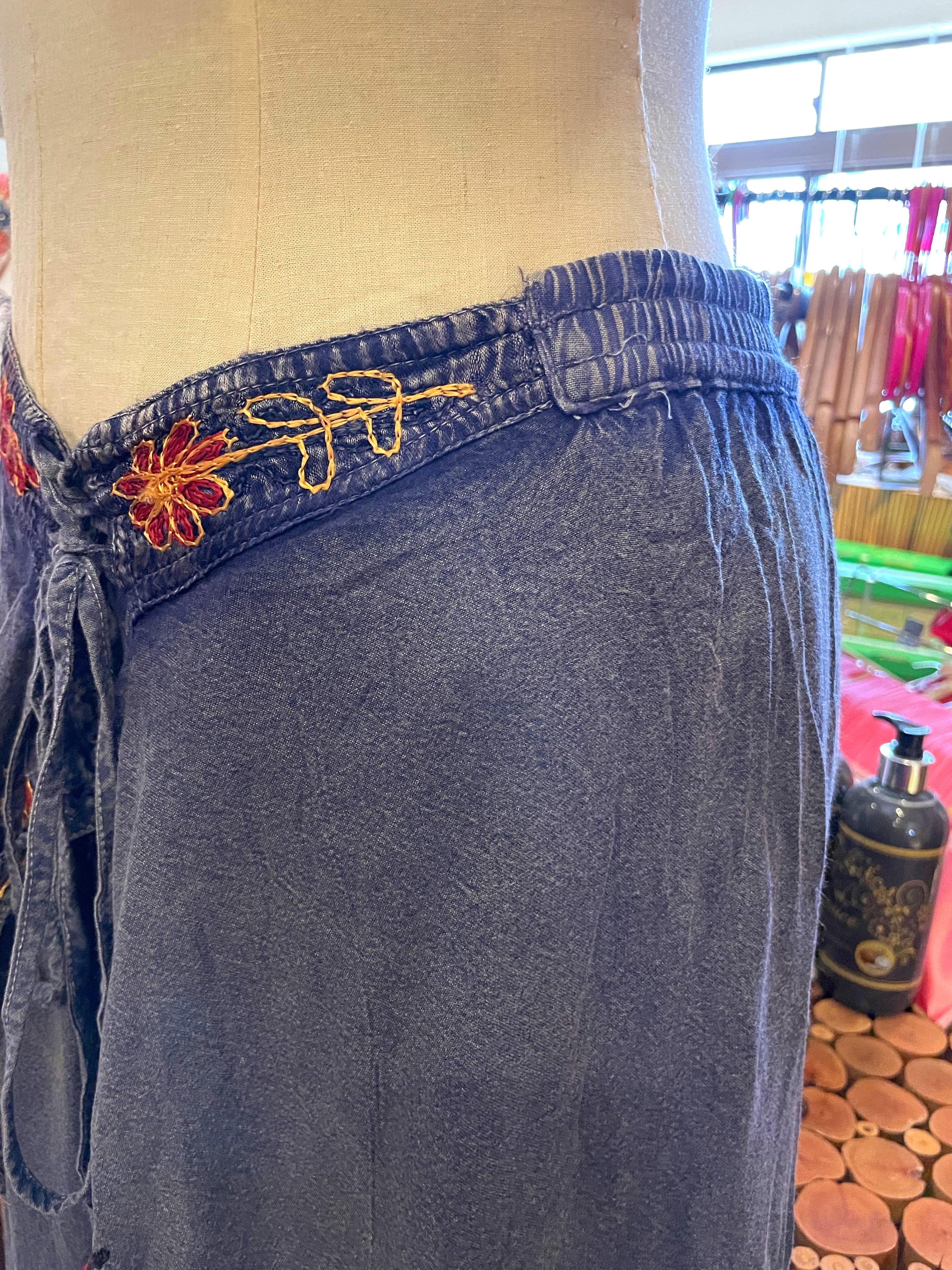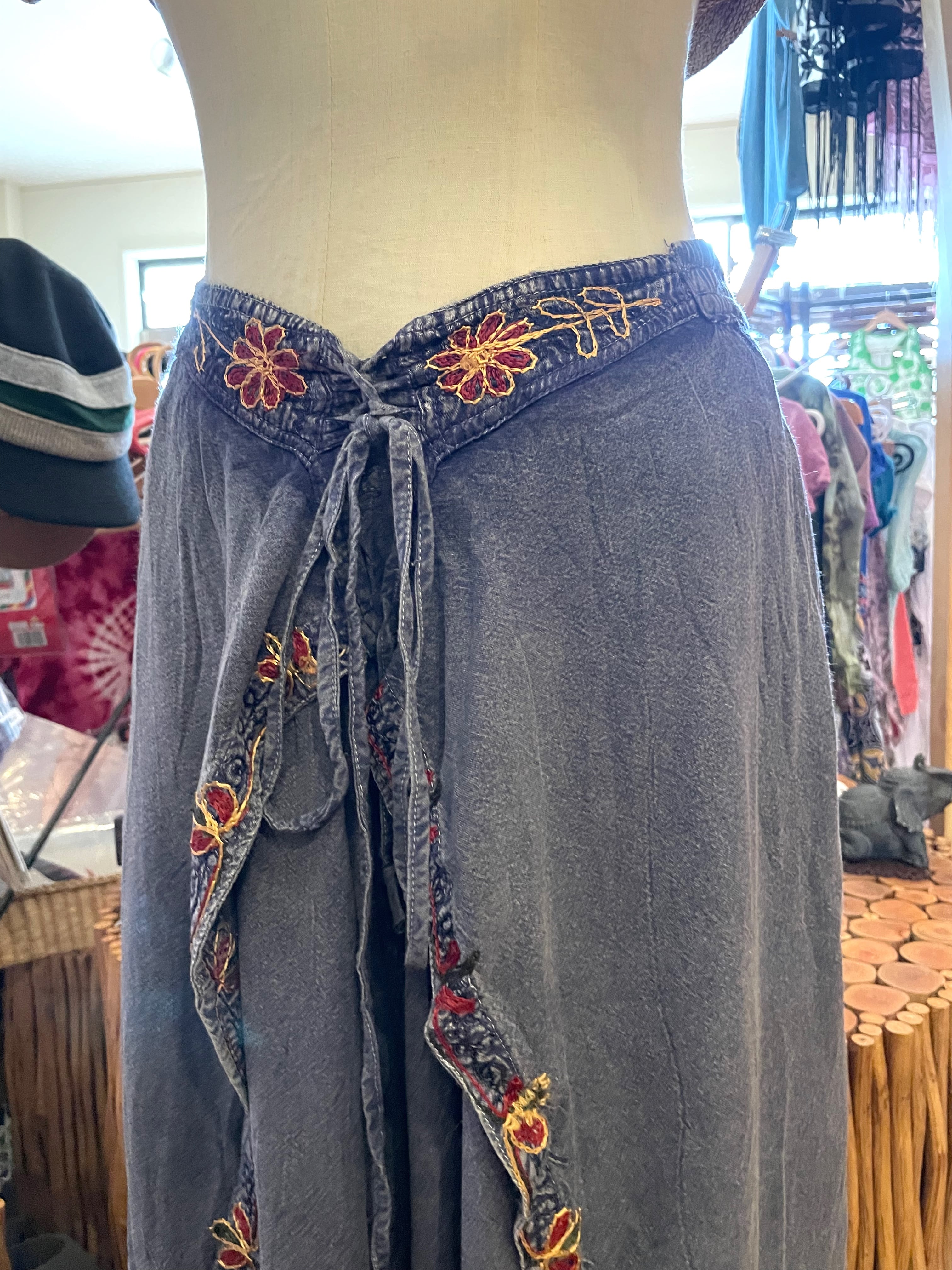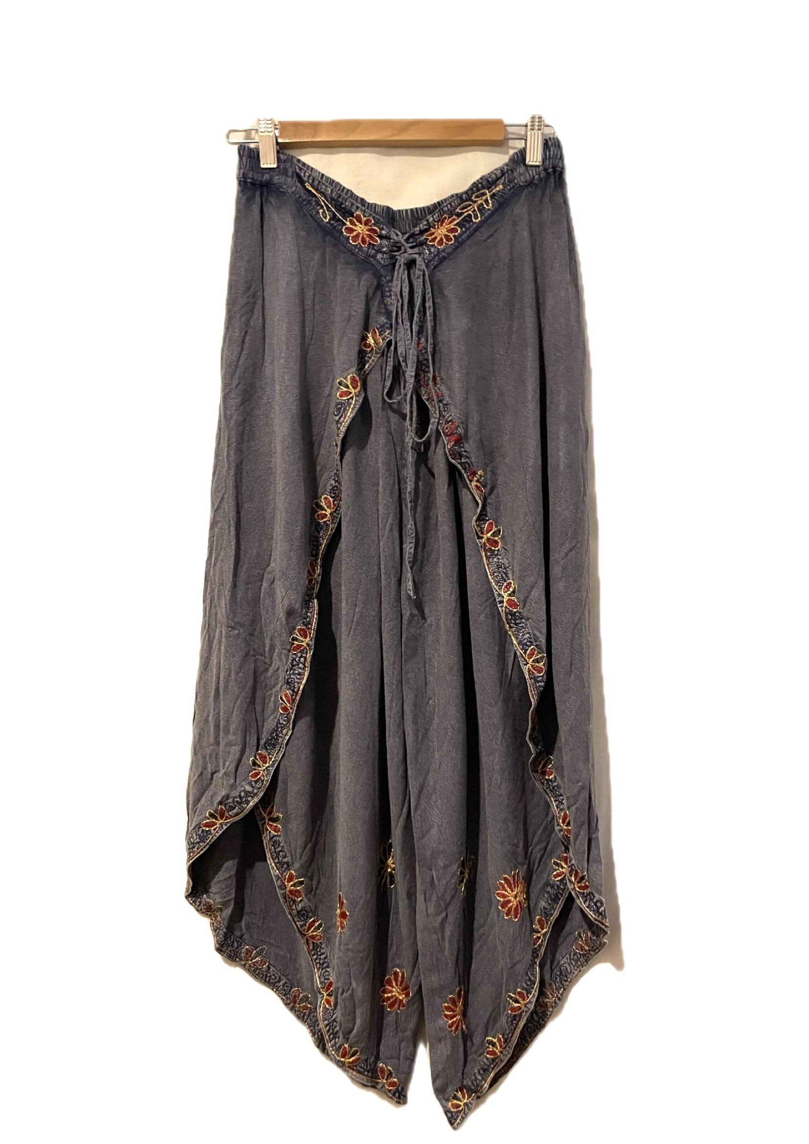 フレアパンツ ラウンドカット ラップパンツ アジアンパンツ エスニックパンツ インドパンツ 夏 リゾート 刺繍 エスニックファッション アジアンファッション アフリカン ファッション ブルー系* No.13