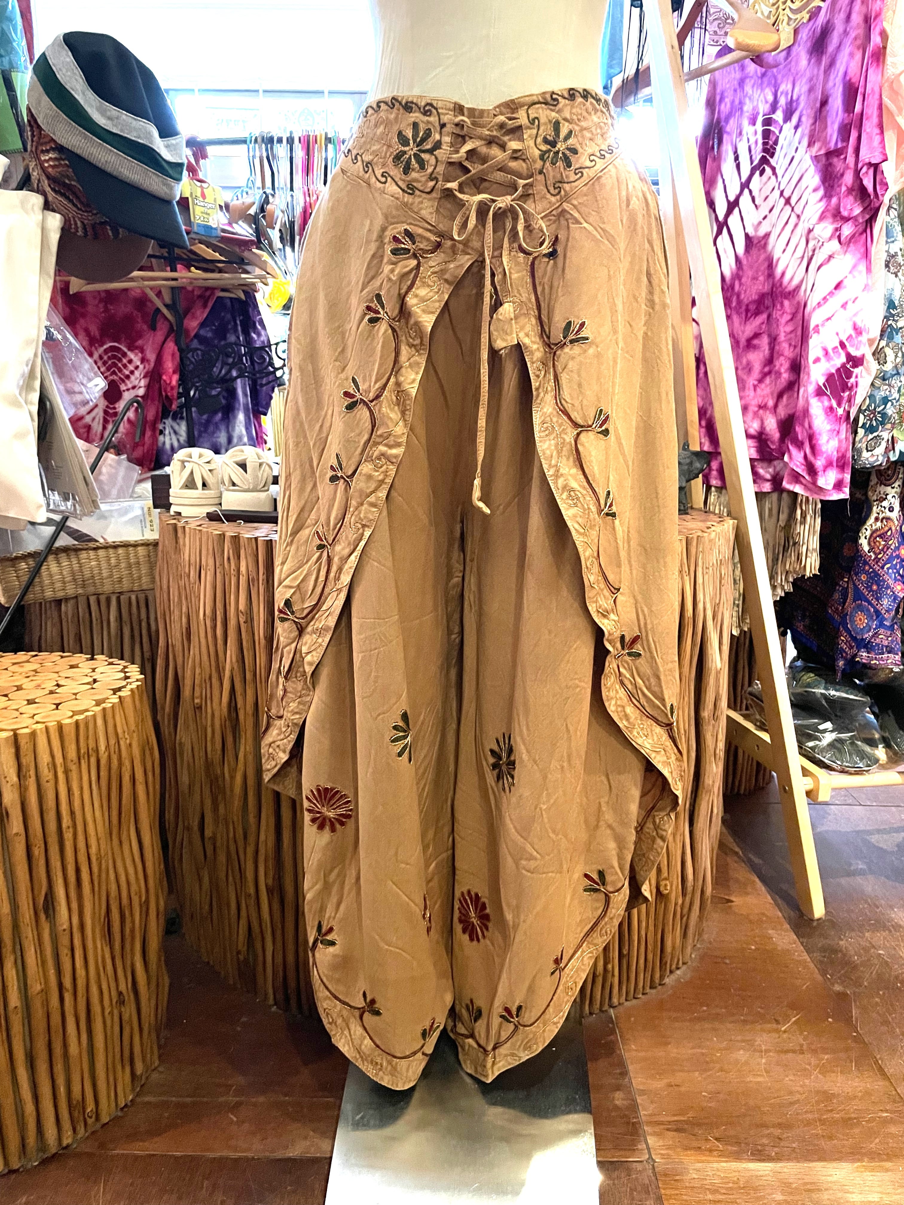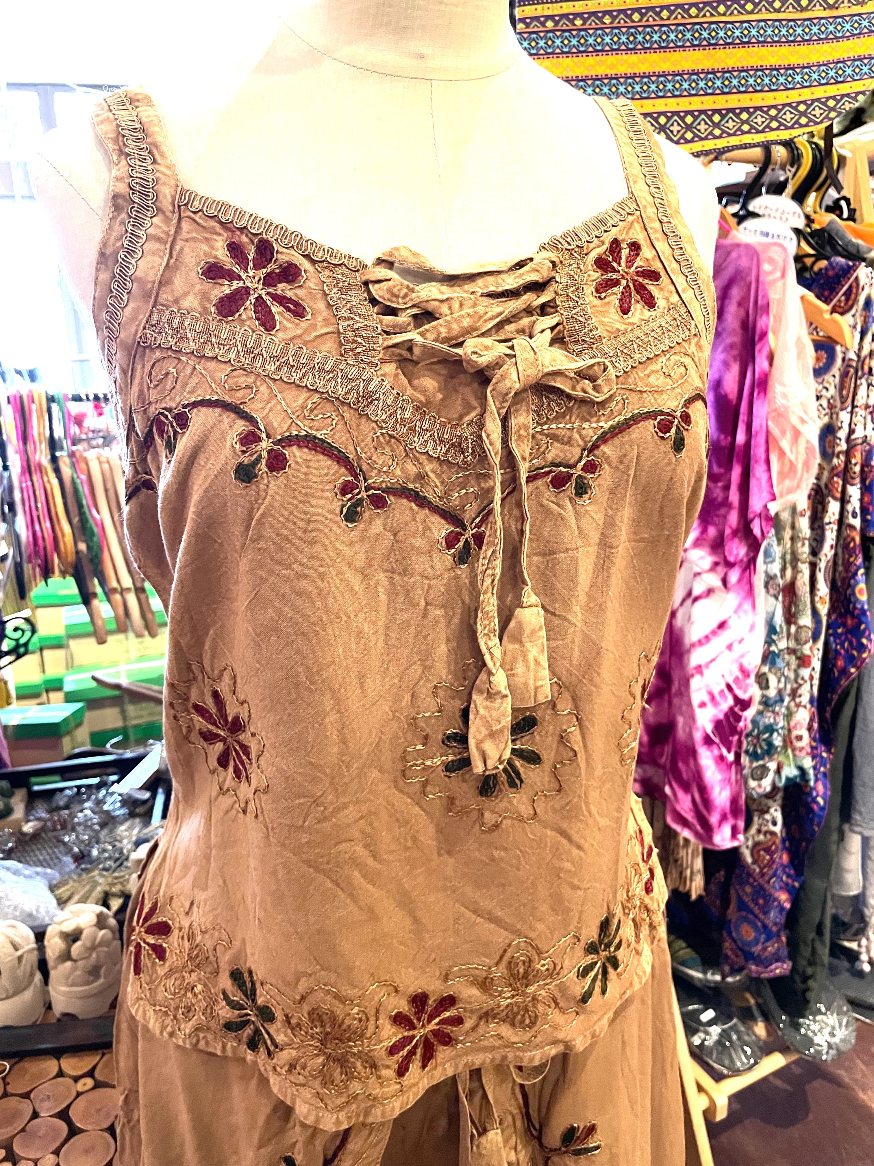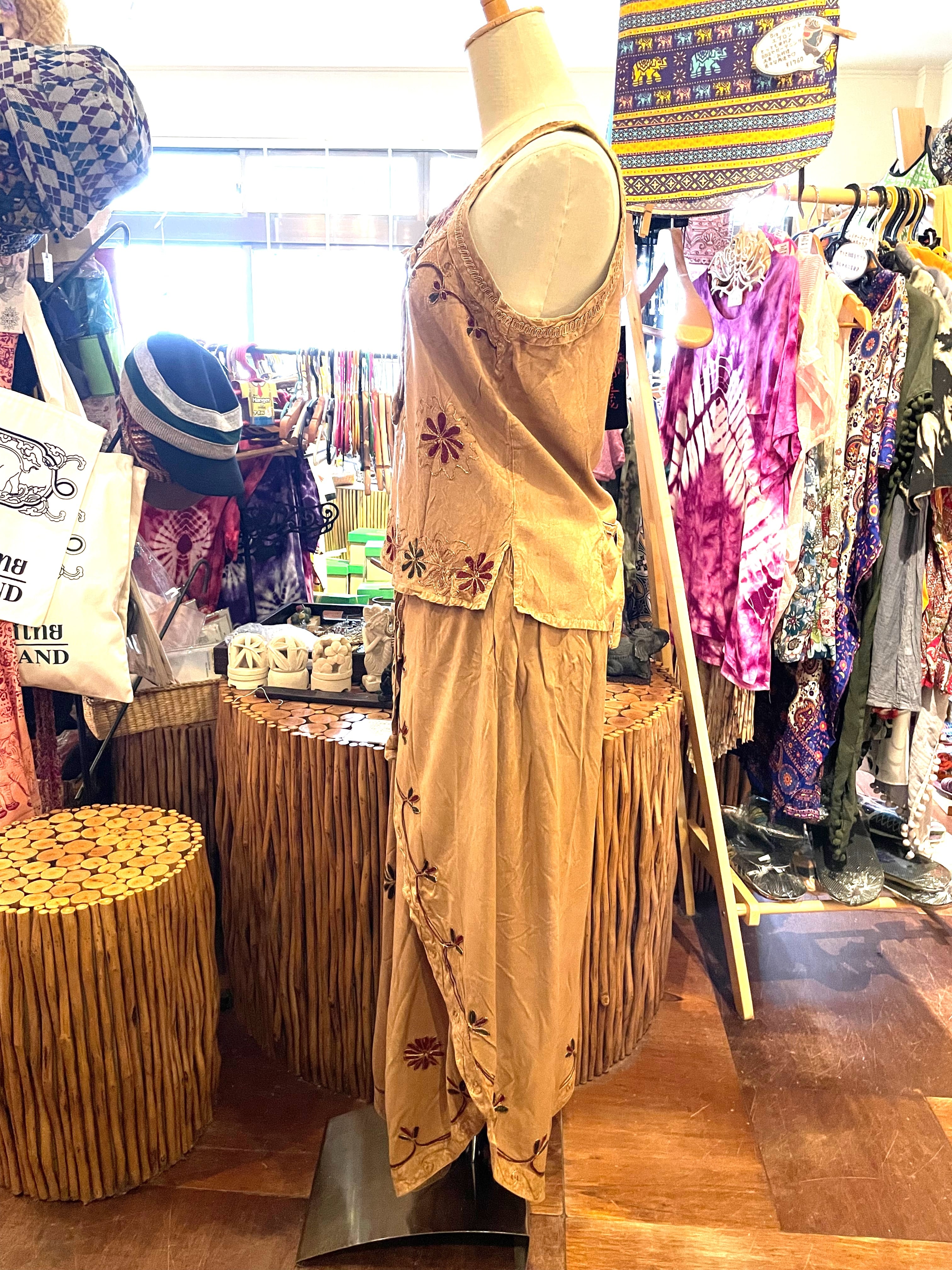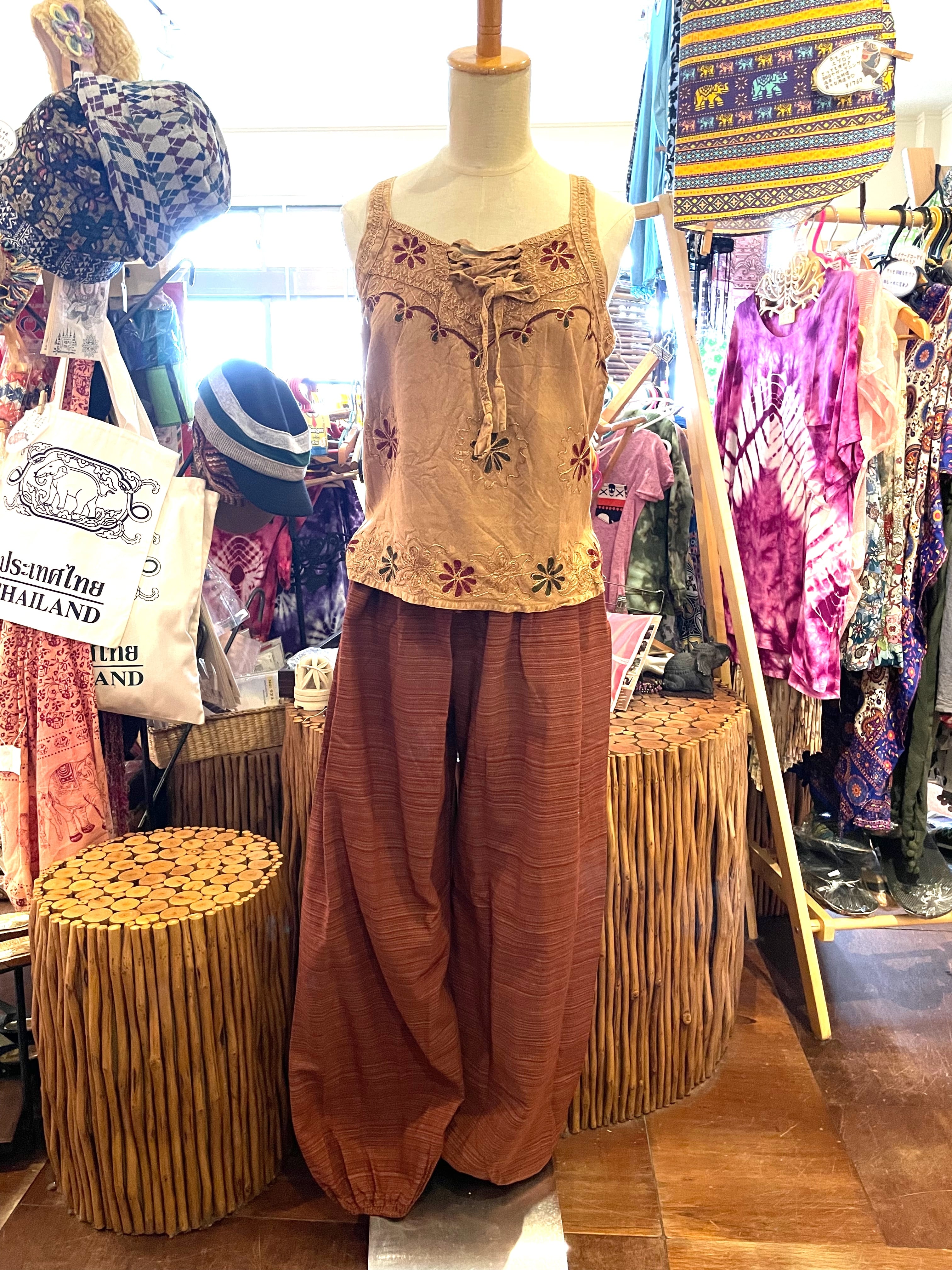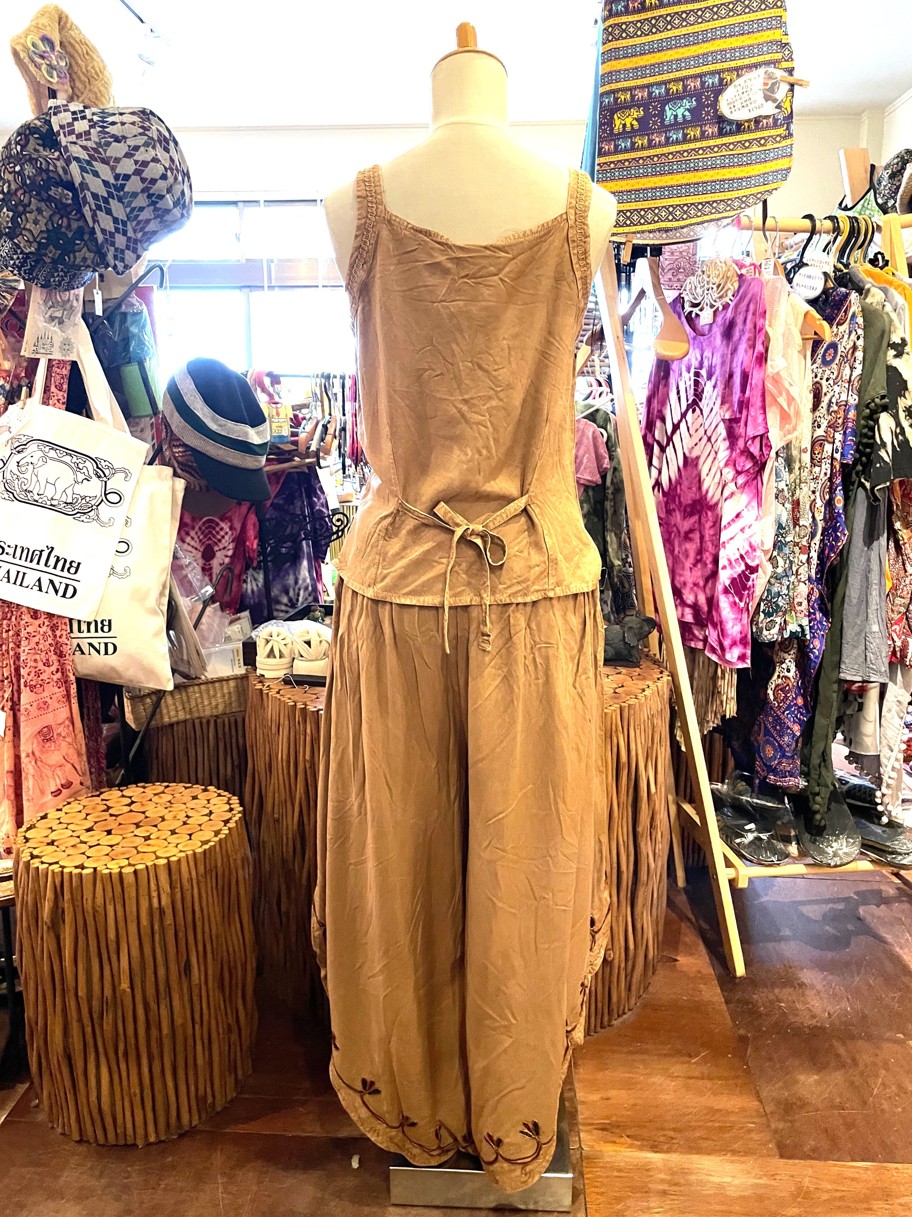 セットアップ キャミソール セット フレアパンツ 夏 リゾート アジアンパンツ アジアンキャミソール 刺繍 インドパンツ エスニックファッション アジアンファッション アフリカン ファッション ブラウン * アジアン雑貨
