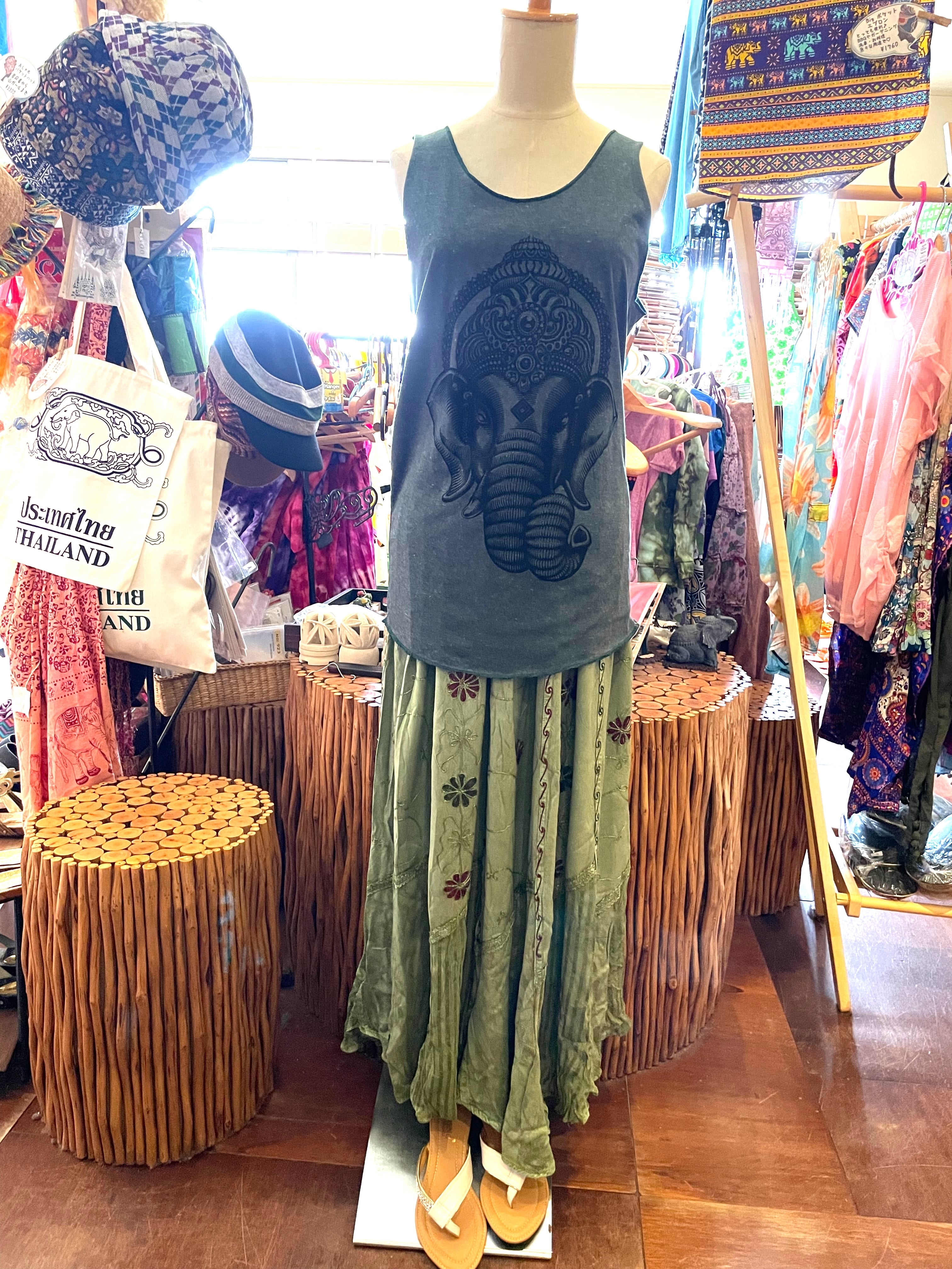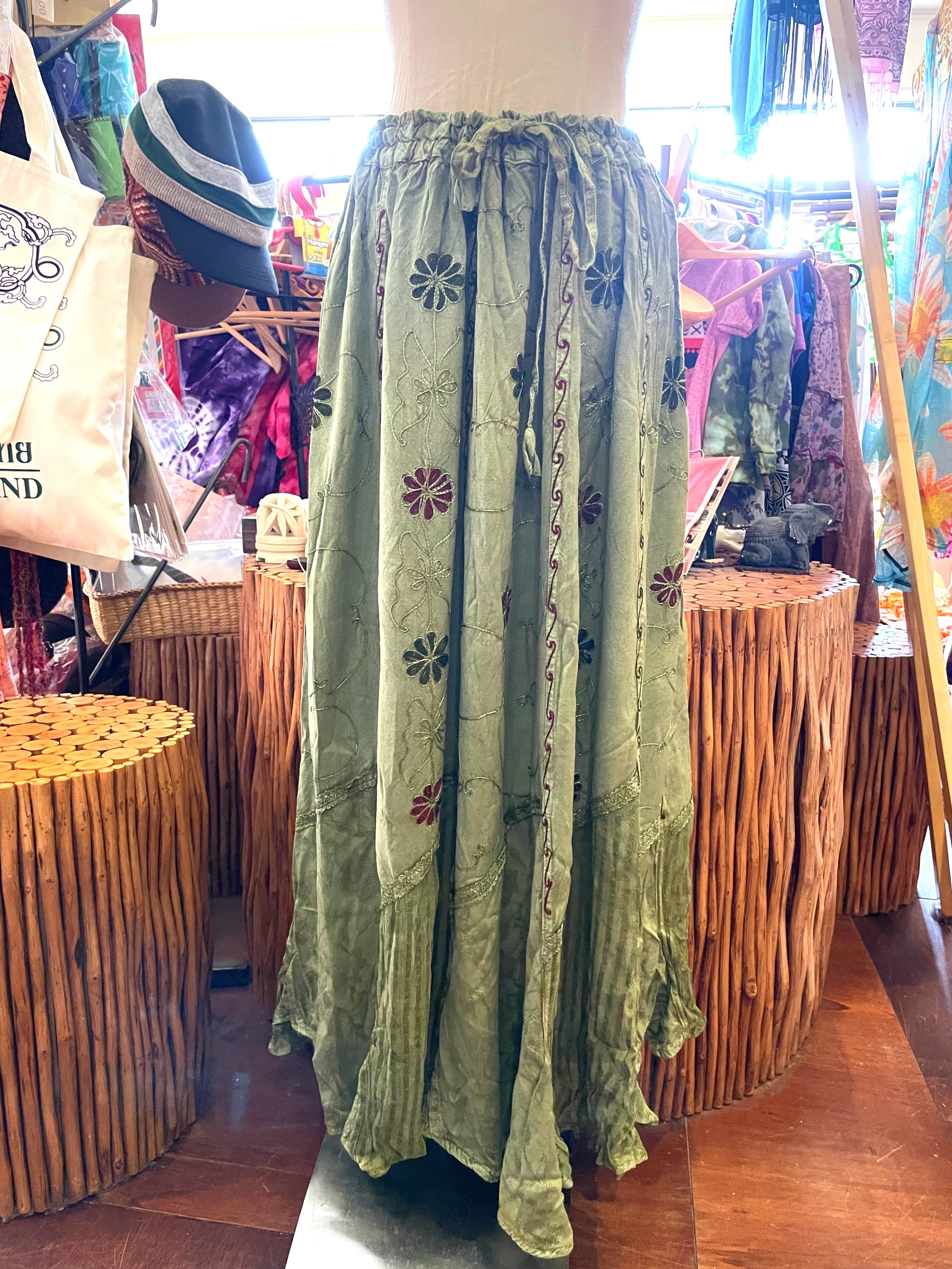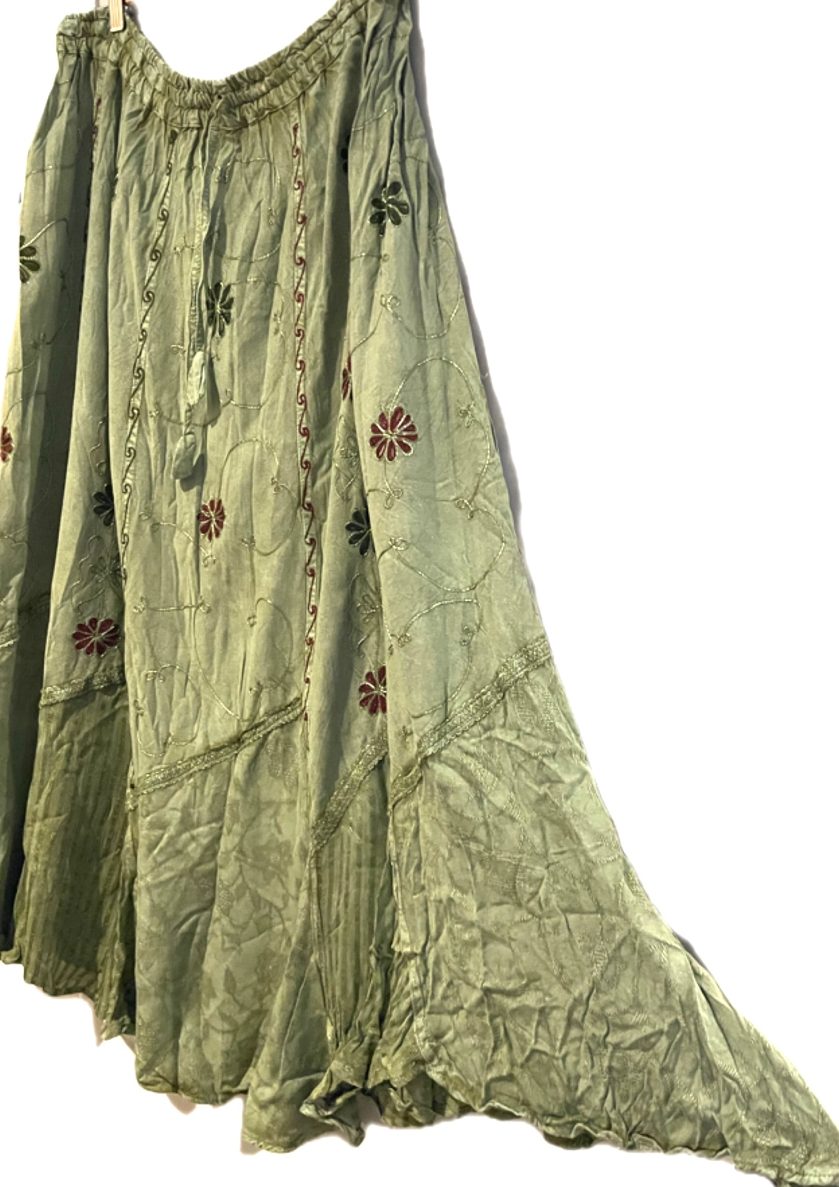ロングスカート スカート マキシ丈 体型カバー 大きめ インド刺繍 刺繍スカート アジアンスカート インドスカート エスニックファッション アジアンファッション 柄スカート グリーン .. * アジアン雑貨 No.120