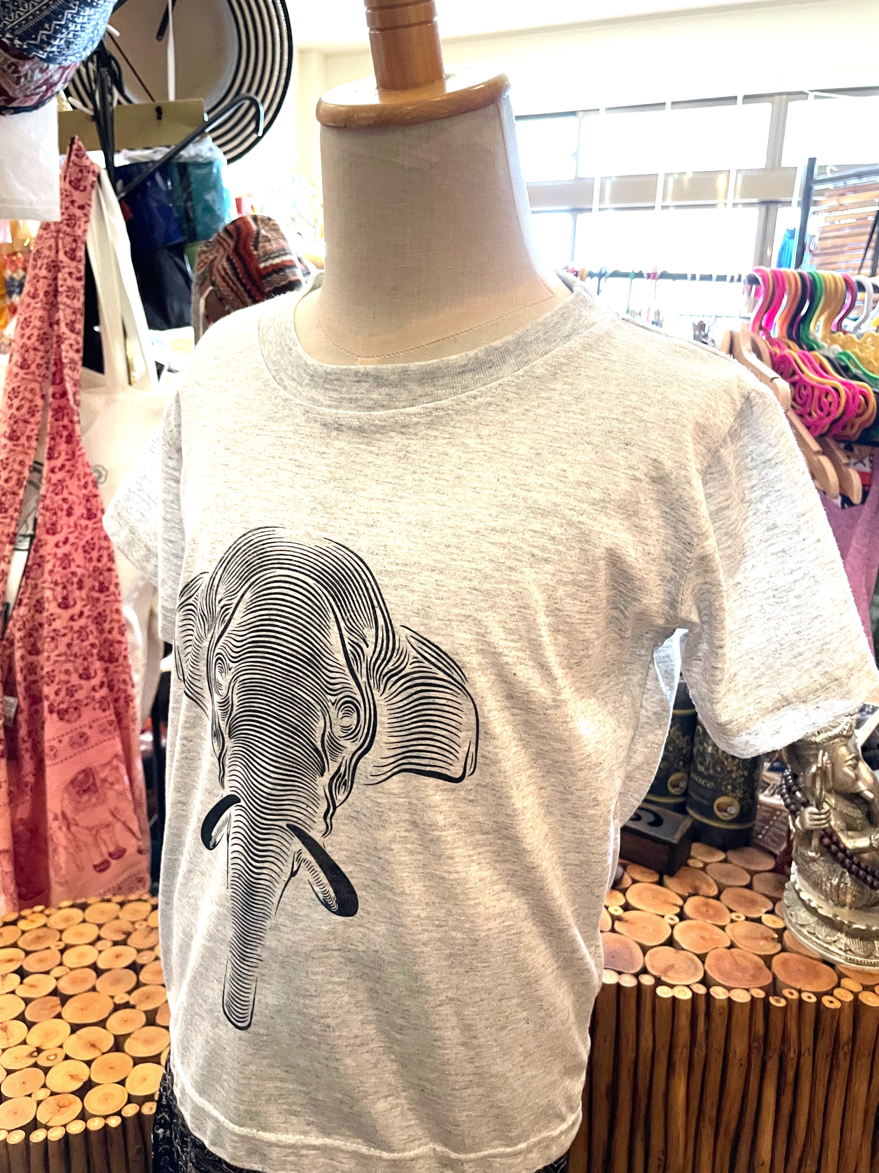 キッズTシャツ Tシャツ キッズ 子供服 ゾウ柄 アニマル柄 個性的 柄 M グレー*アジアン雑貨No.10