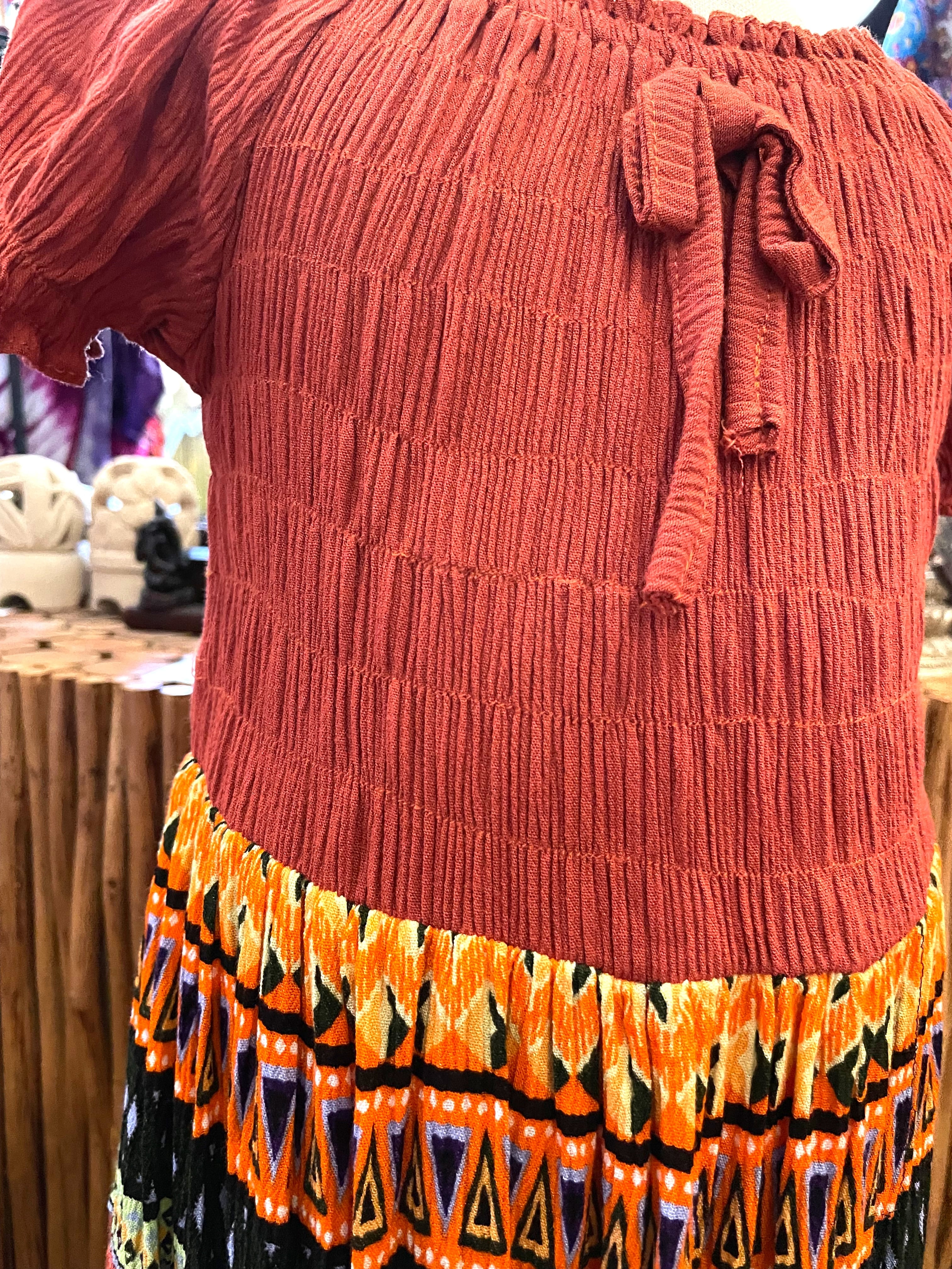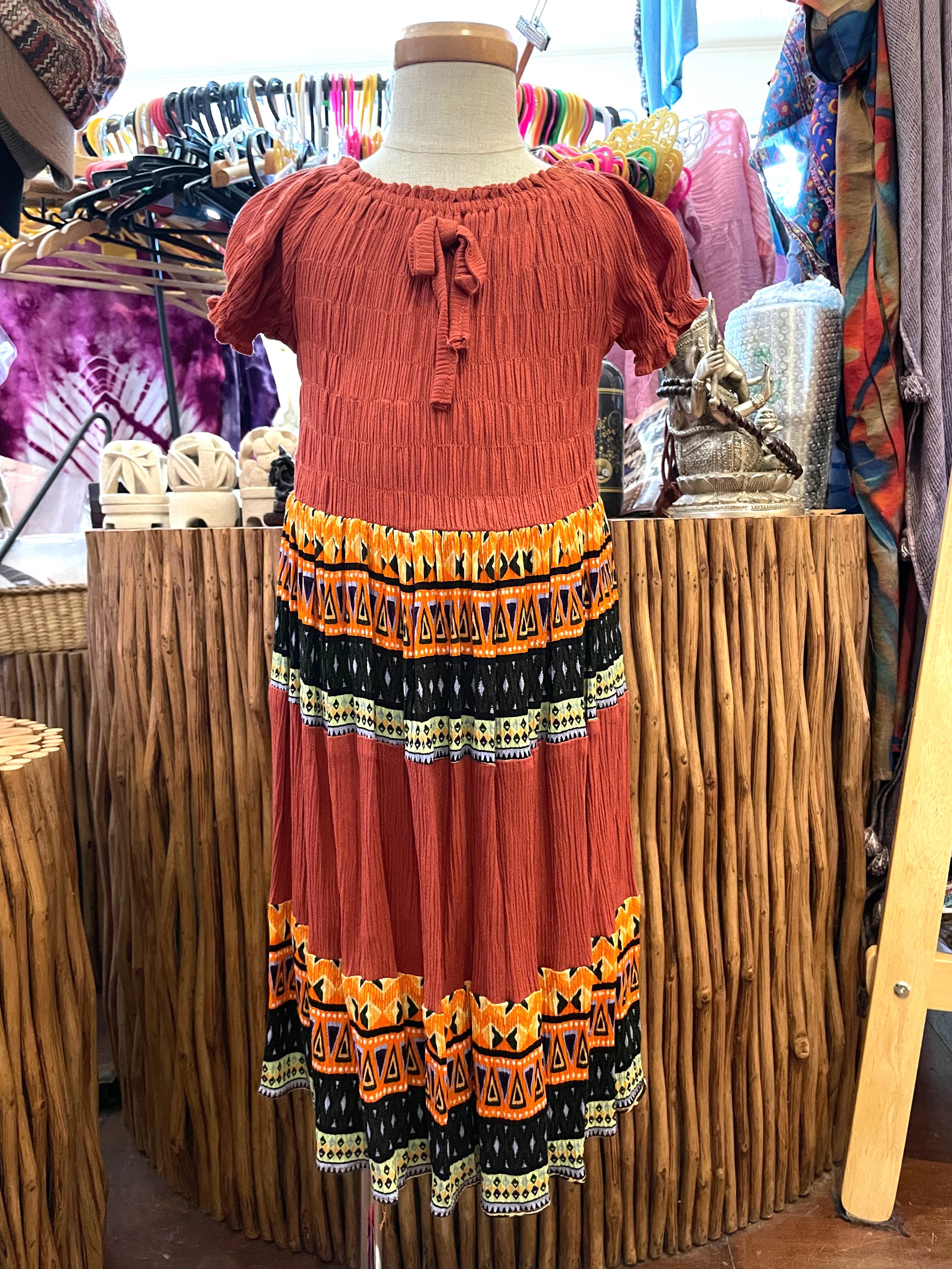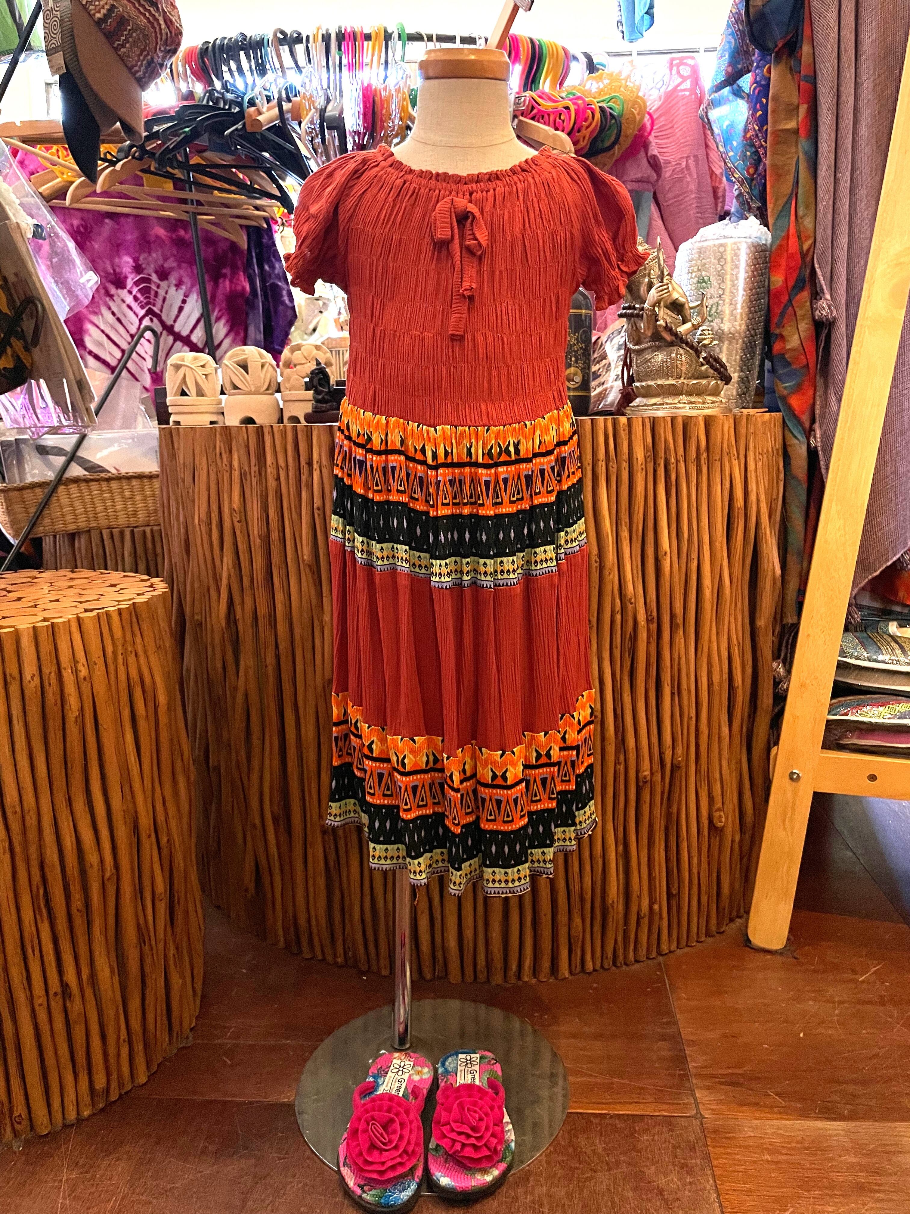 キッズワンピース キッズスカート チュニック 子供服 子供ワンピース ワンピース タイダイ パフスリーブワンピース リゾートワンピース キッズエスニックファッション エスニックファッション エスニック アジアン *アジアン雑貨No.12-e S