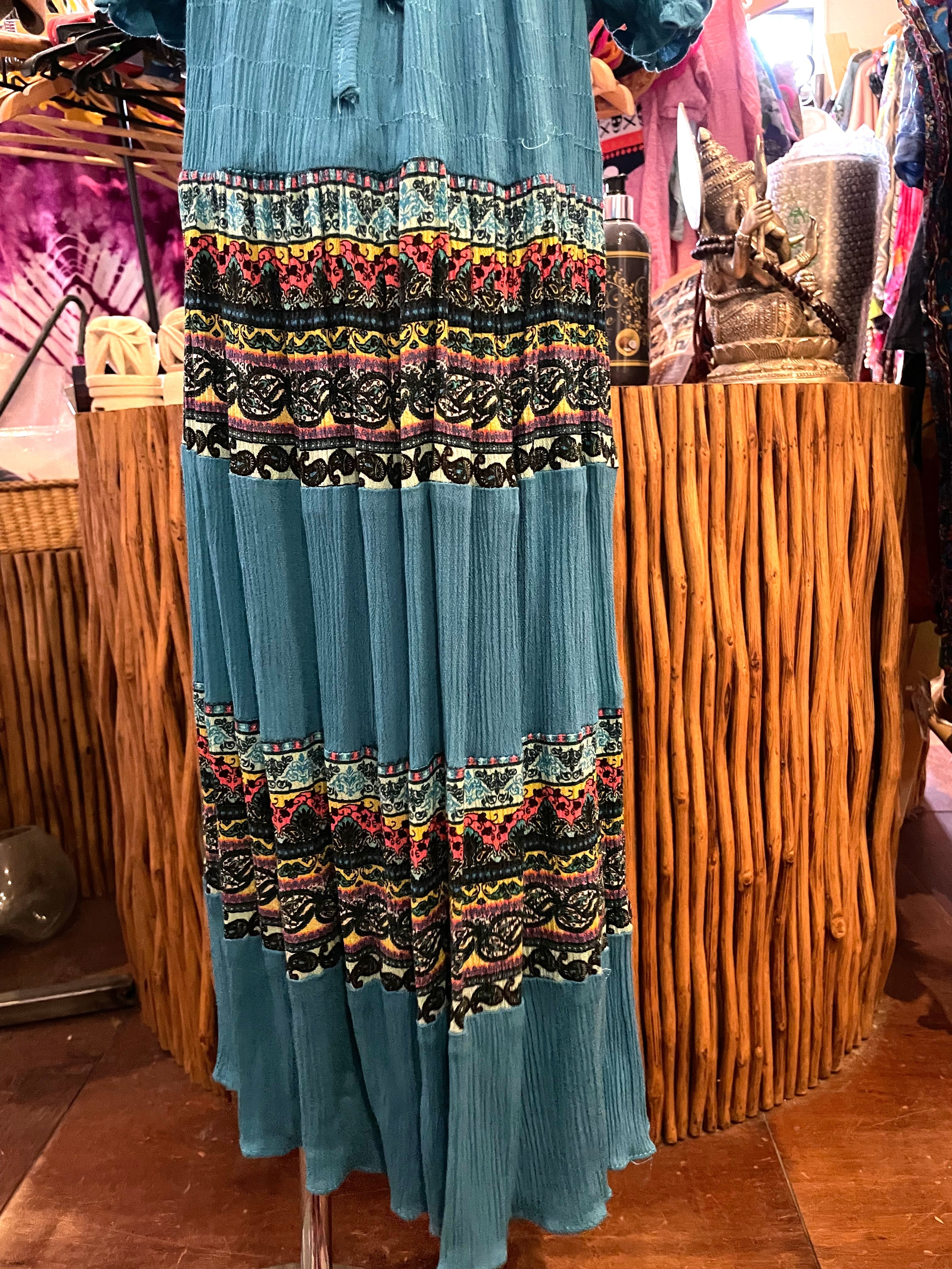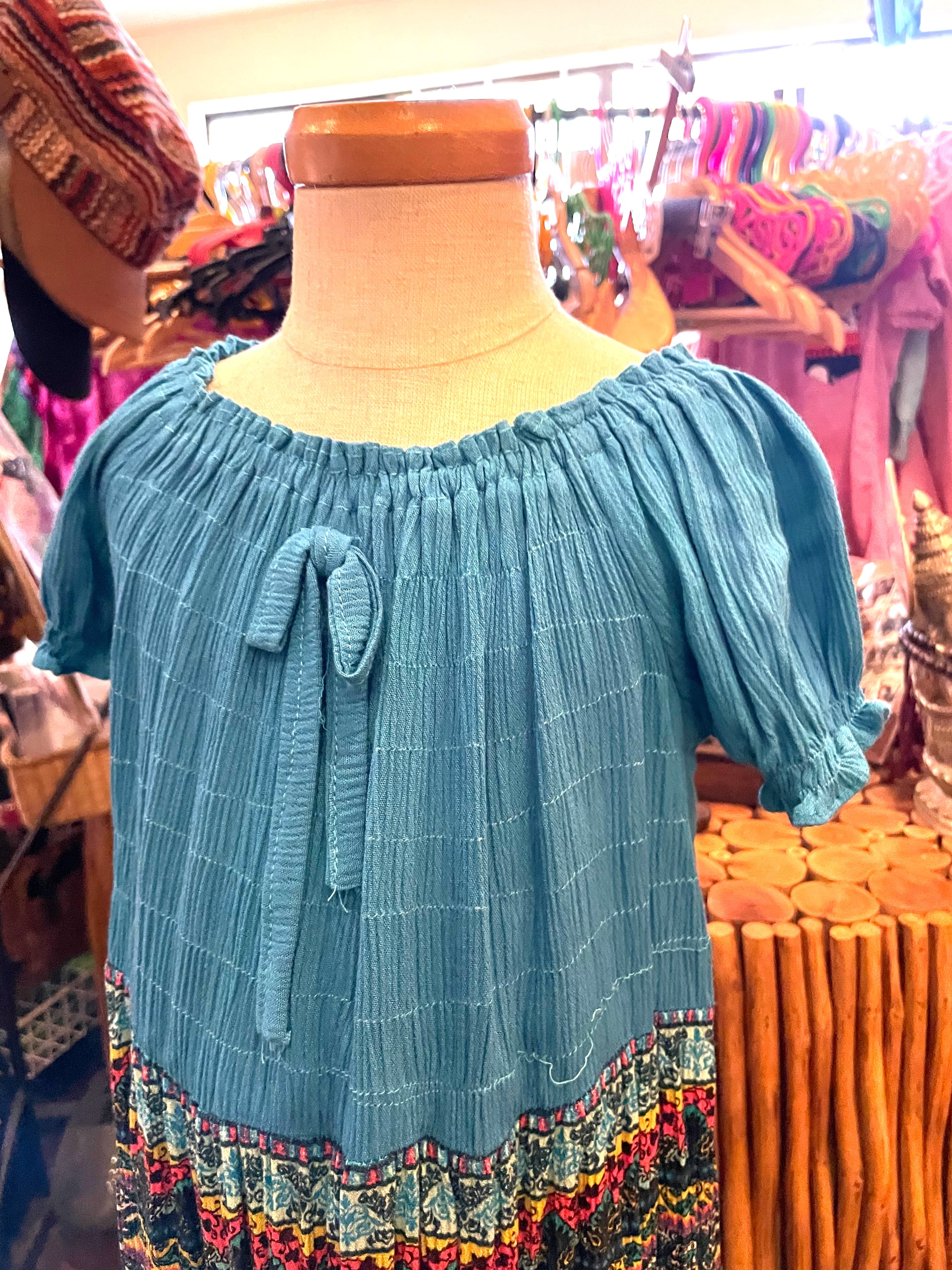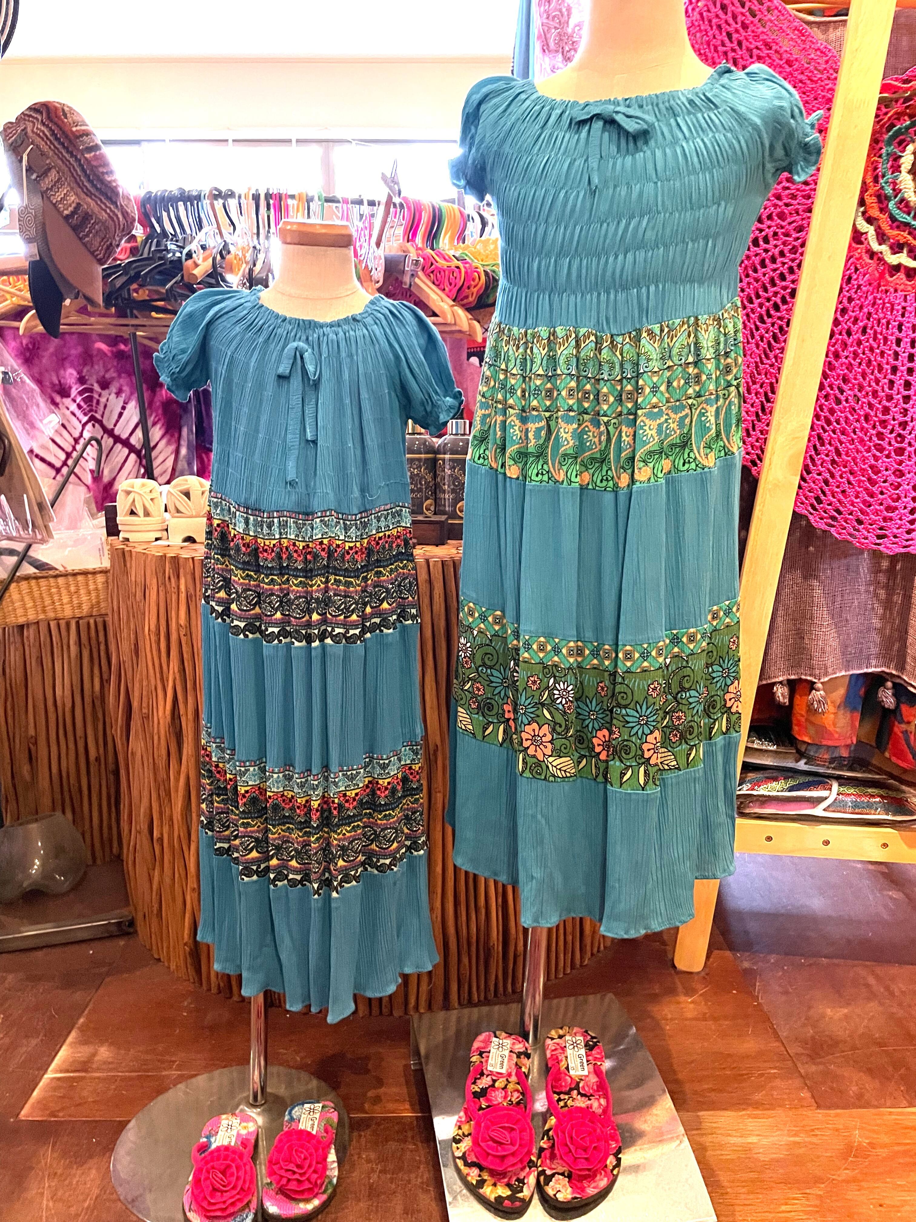 キッズワンピース キッズスカート チュニック 子供服 子供ワンピース ワンピース タイダイ パフスリーブワンピース リゾートワンピース キッズエスニックファッション エスニックファッション エスニック アジアン ターコイズ *アジアン雑貨No.12-b M