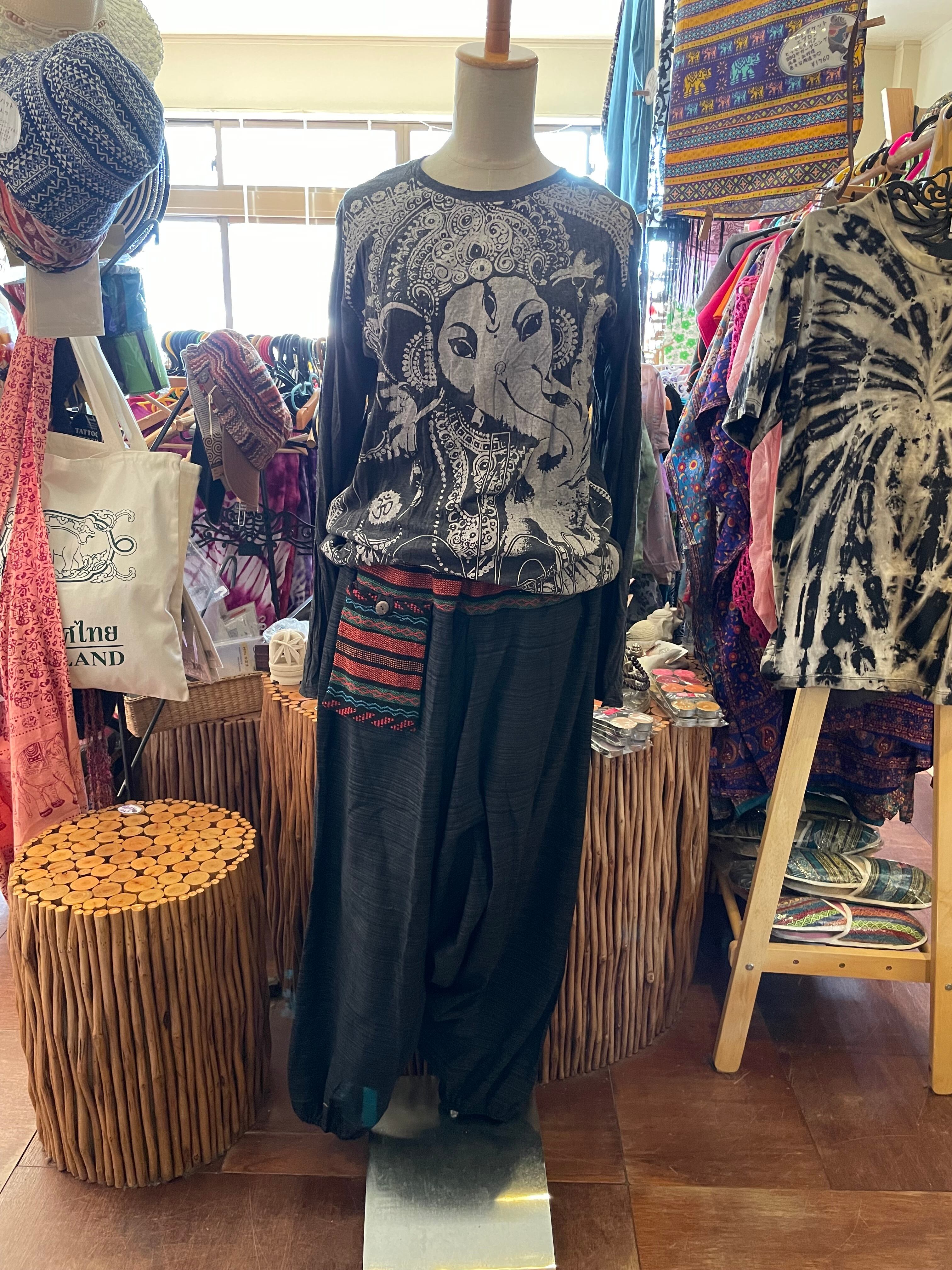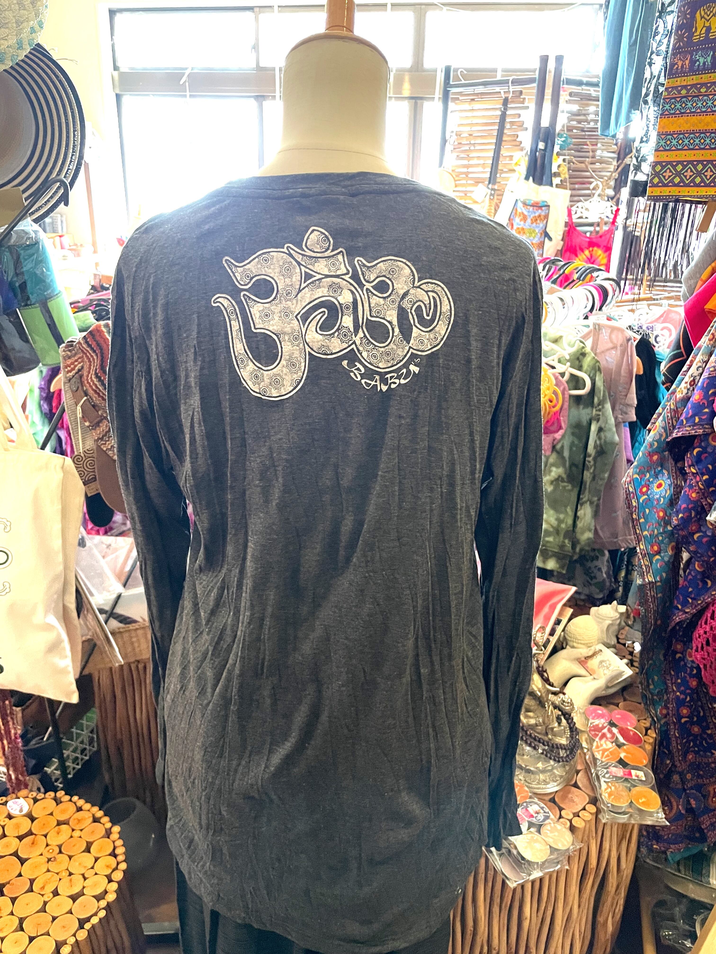 メンズロンT 長袖Tシャツ ロングTシャツ メンズ レディース エスニック ユニセックス アジアン クリンクル加工 ガネーシャプリント サイズM*アジアン雑賀 No.300