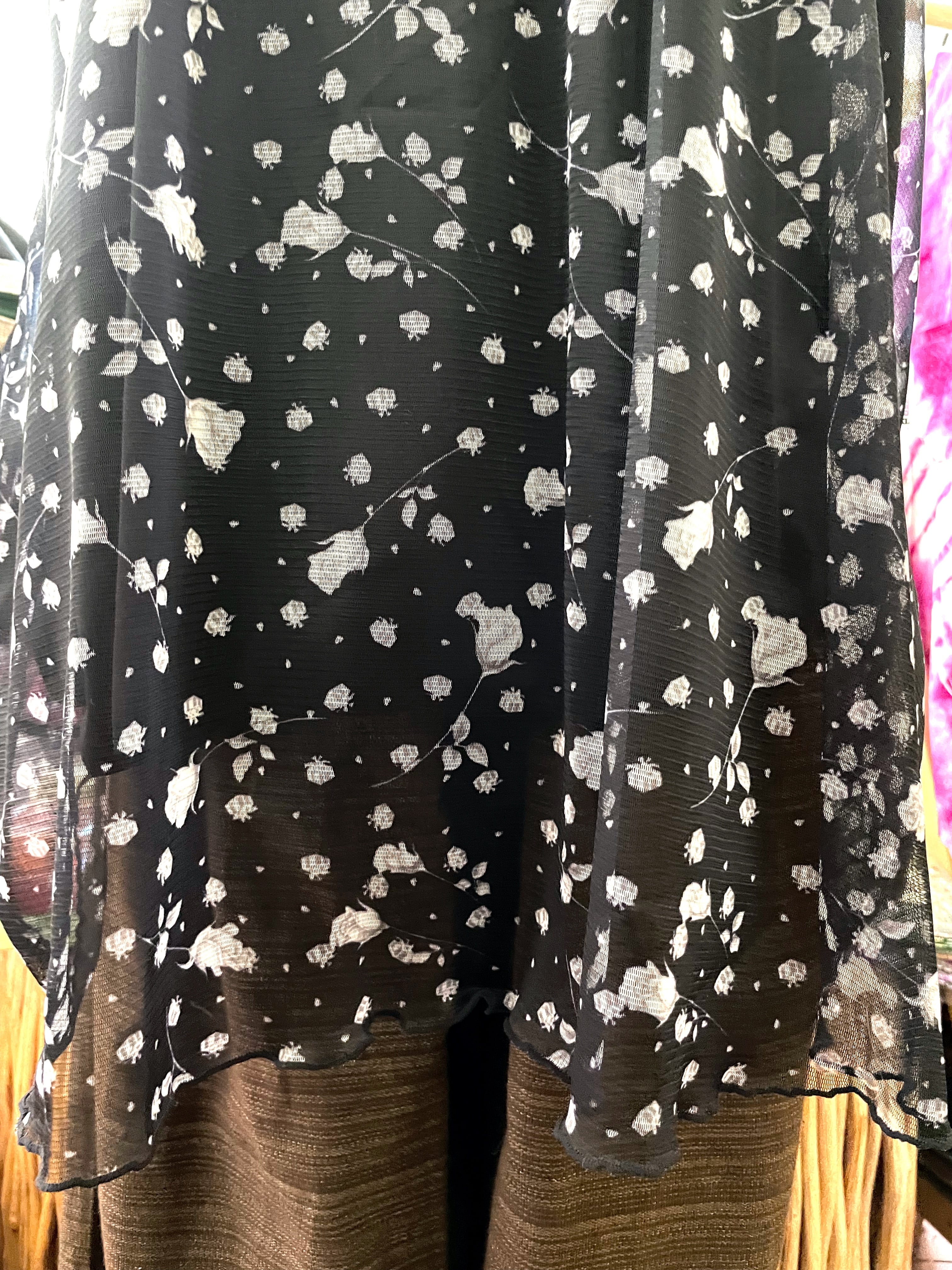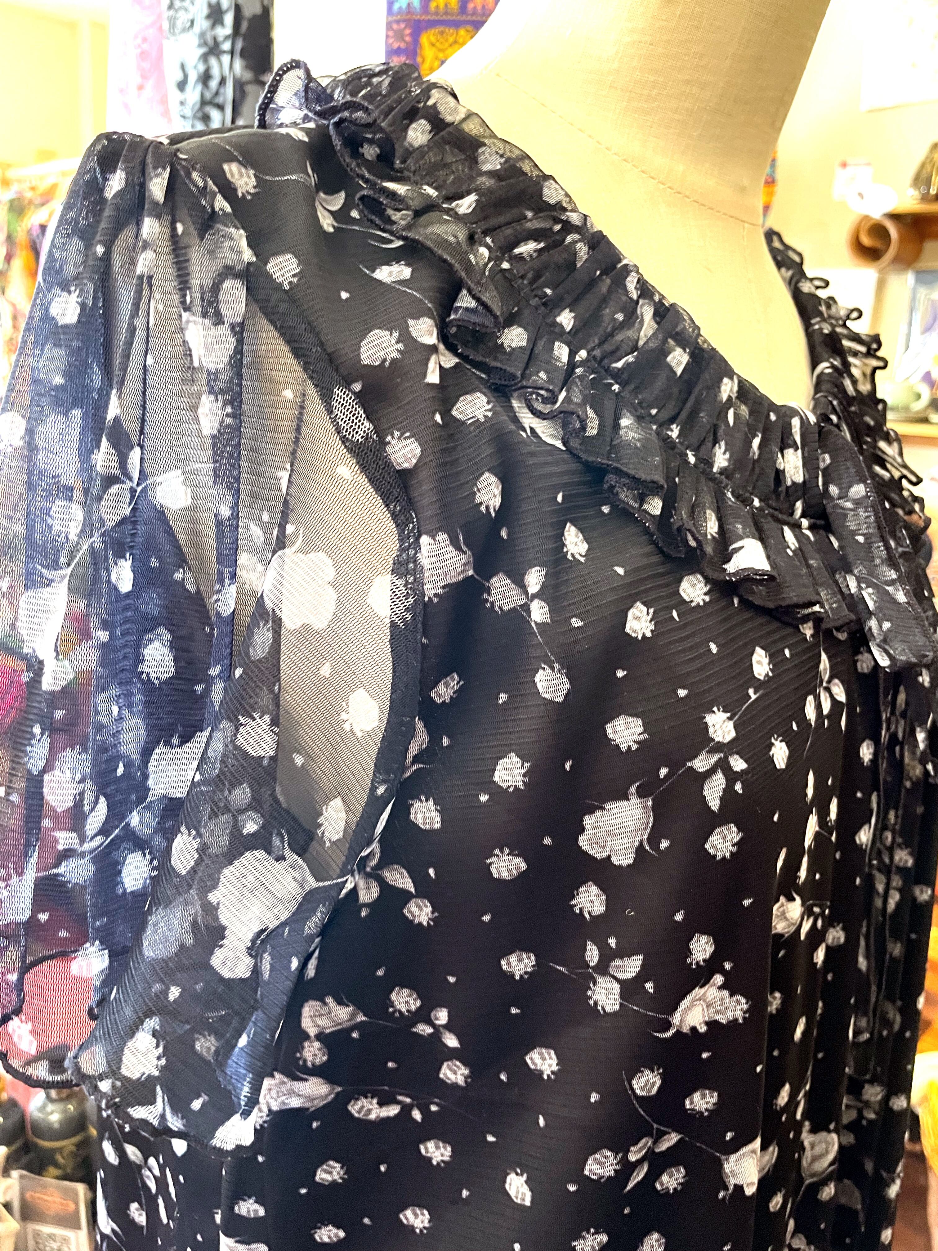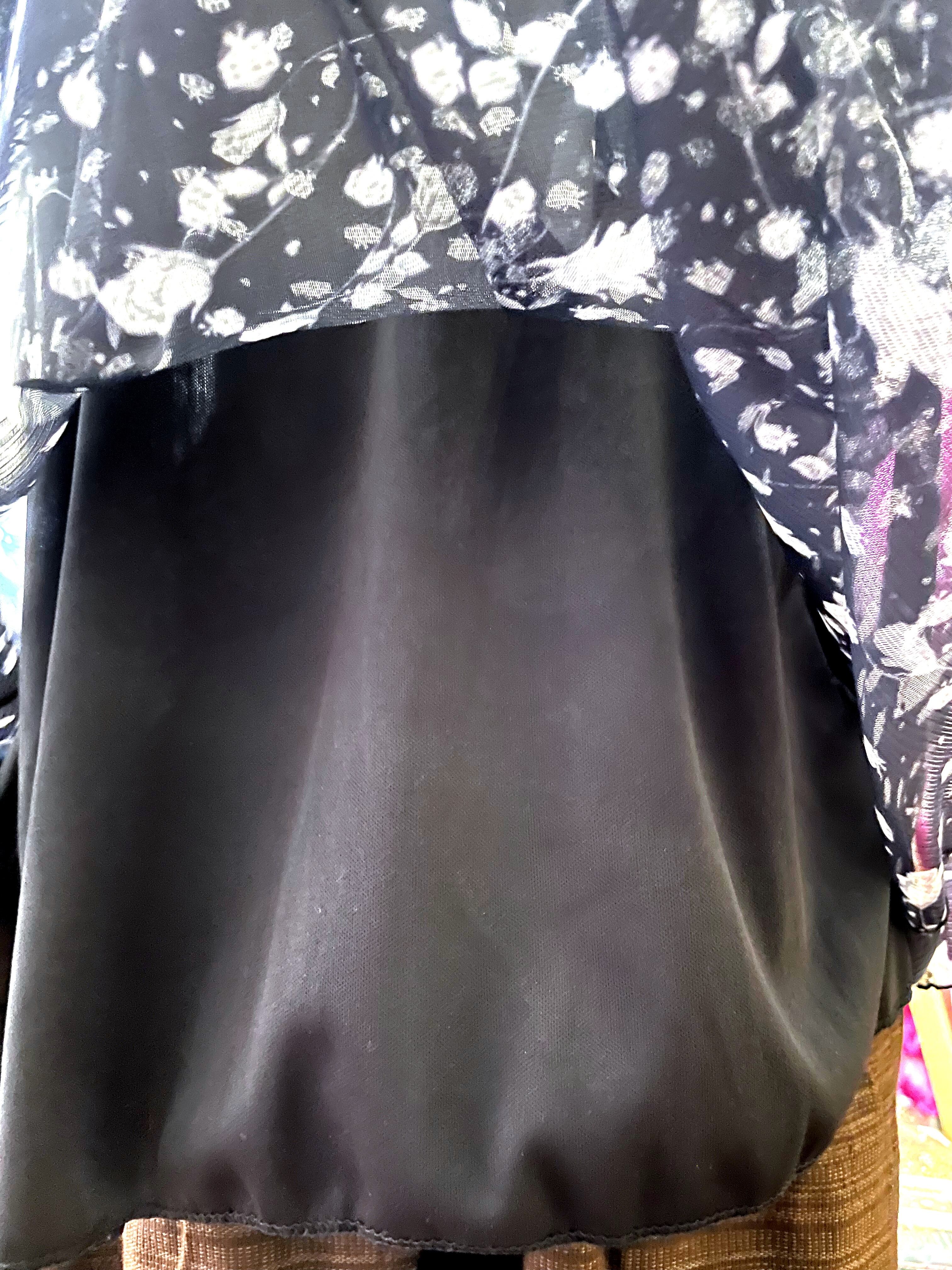 ブラウス 半袖 半袖レースチュニック チュニック フレアー シースルー 花柄 アジアン 裏地付き ネイビー * アジアン雑貨No.79