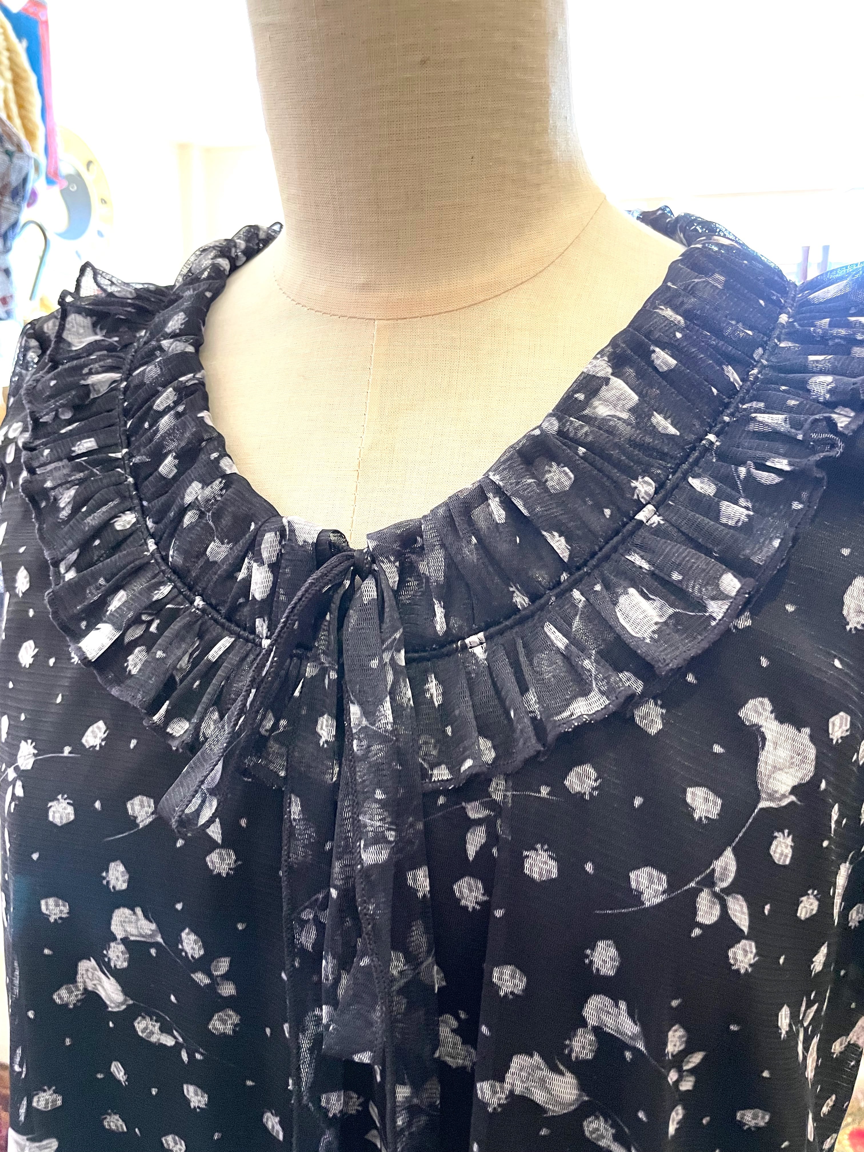 フロントのリボンとフリルの襟が首元を綺麗に見せてくれます。