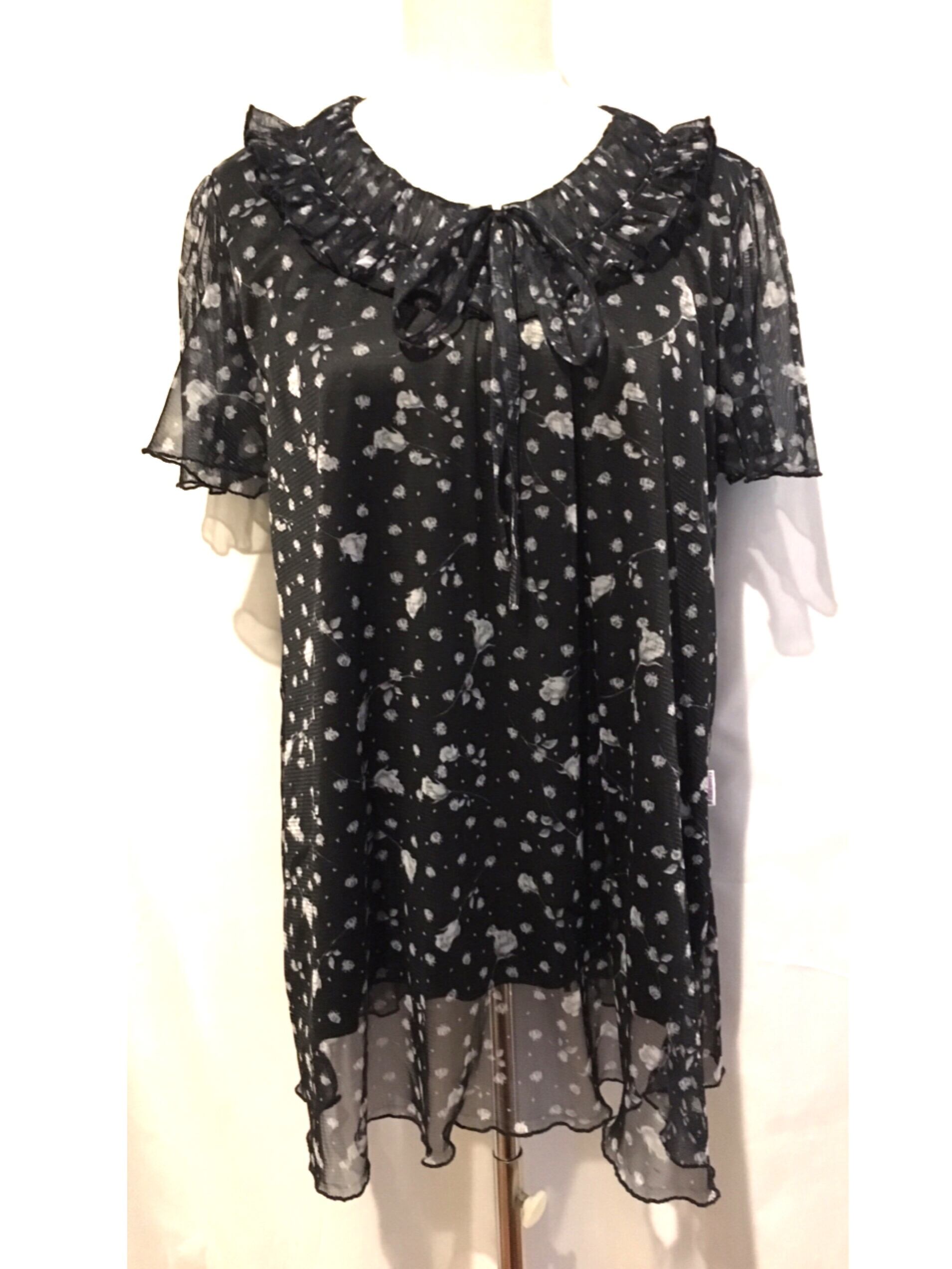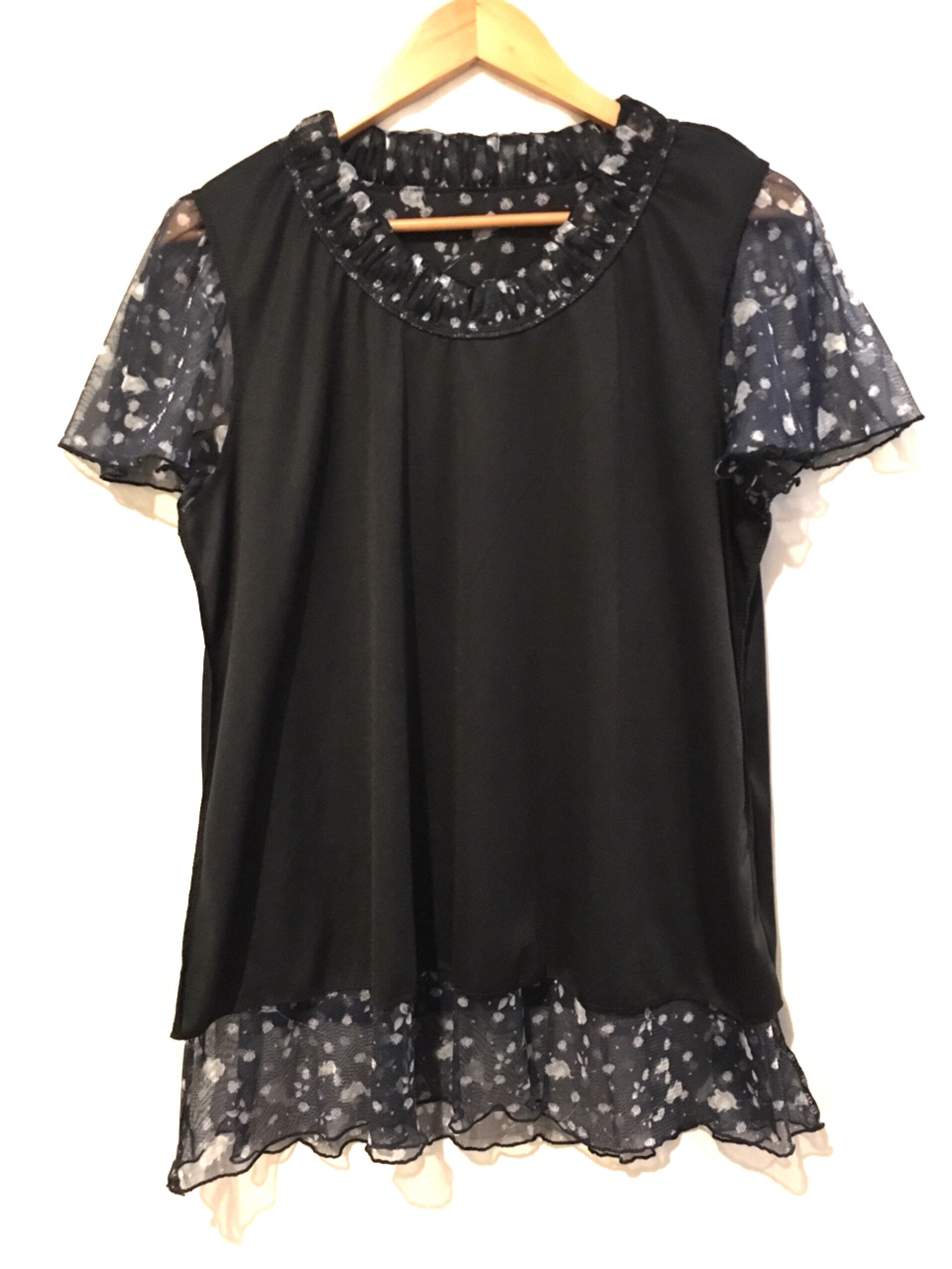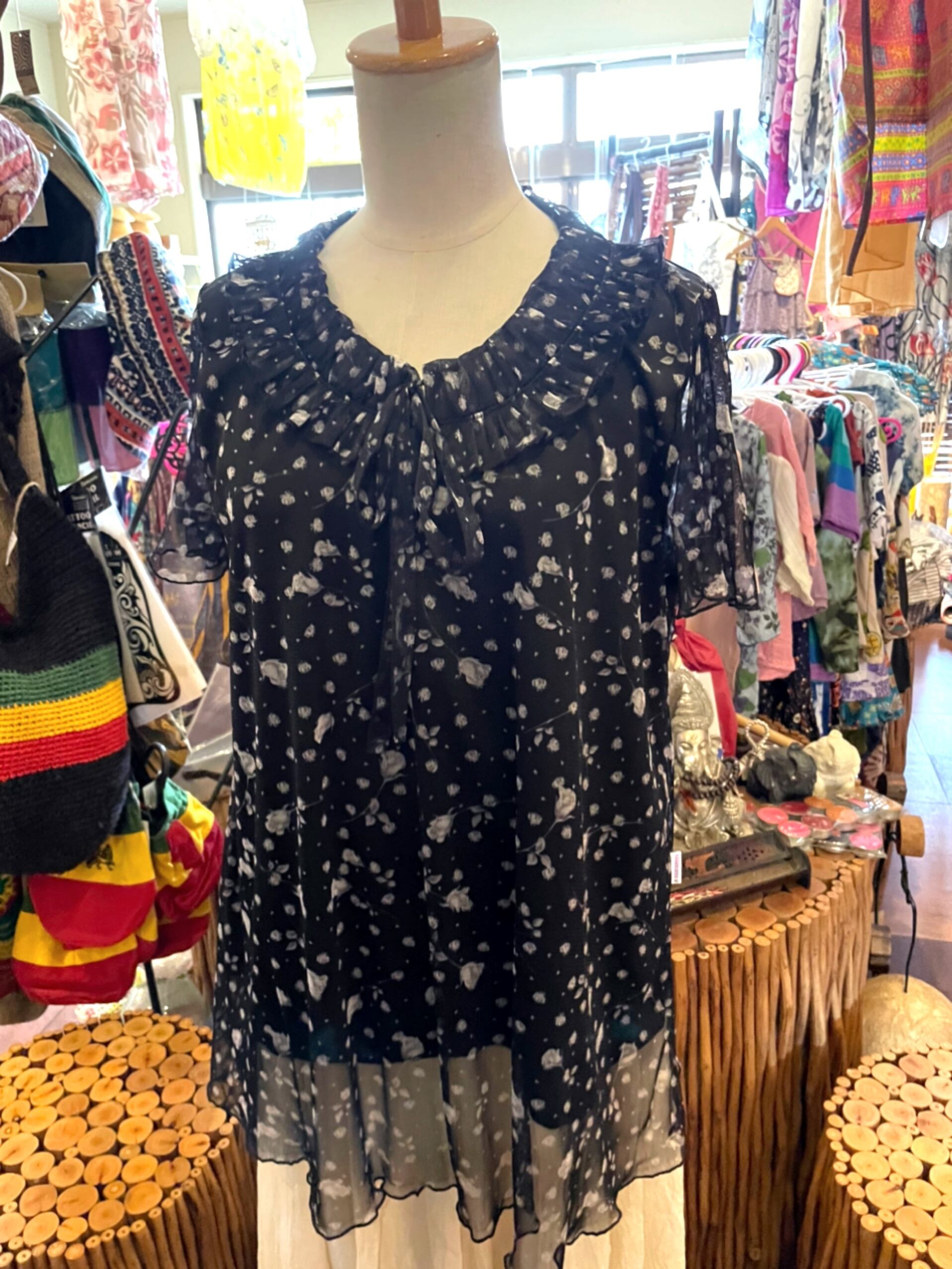 ブラウス 半袖 半袖レースチュニック チュニック フレアー シースルー 花柄 アジアン * アジアン雑貨No.79