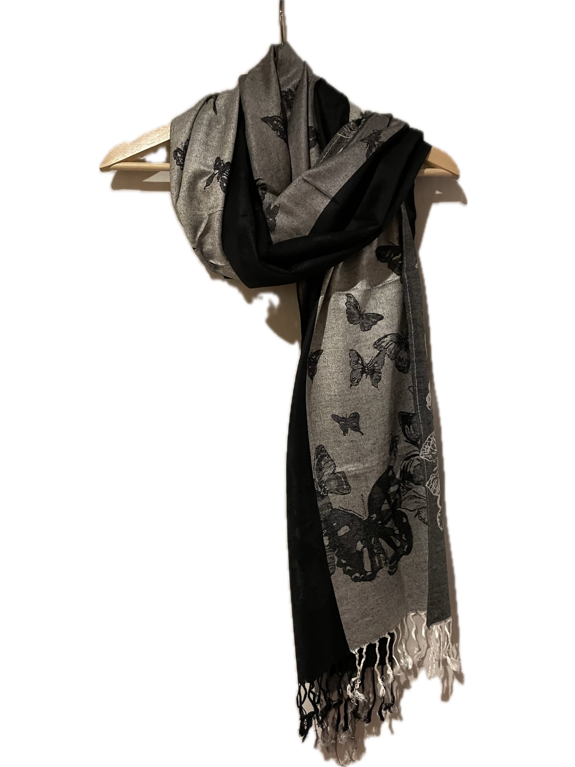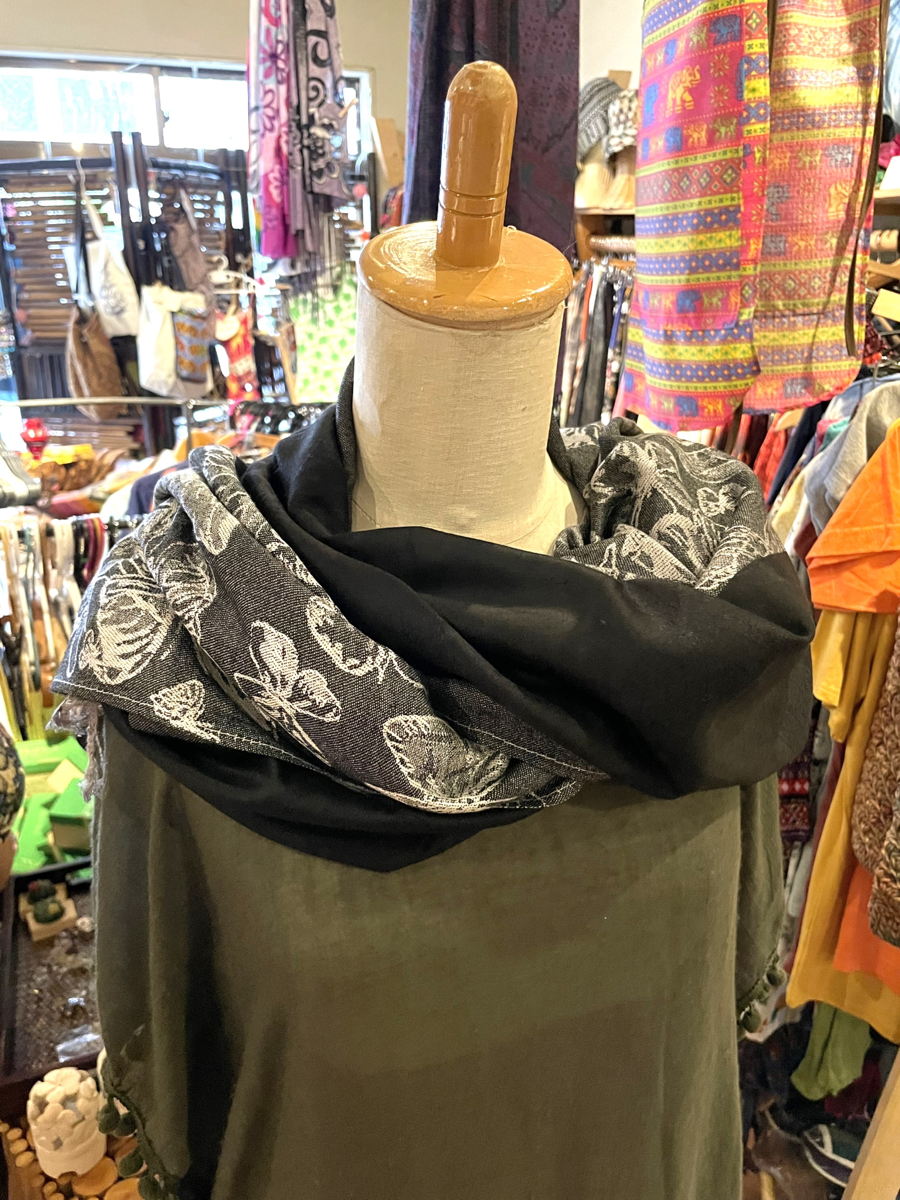ストール 大判ストール 上品 柔らかい 光沢 リバーシブル リバーシブルストール 春 夏 秋 冬 マフラー アジアンストール 柄 男女兼用 メンズストール エスニックファッション アフリカン エスニック パーティー プレゼント アジアン 蝶々柄 ブラック * アジアン雑貨 No.18 g